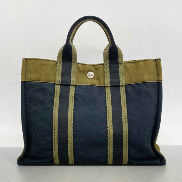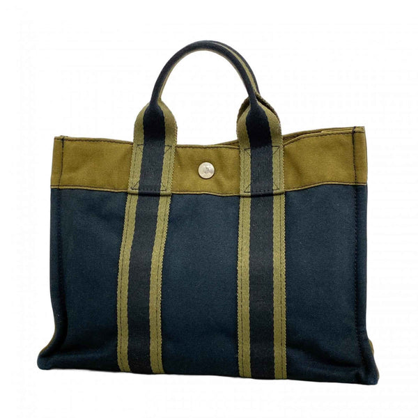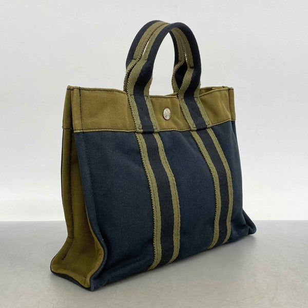 Hermes Hermès Fouleaux PM Tote Bag, Canvas, Navy Green, Women\'s