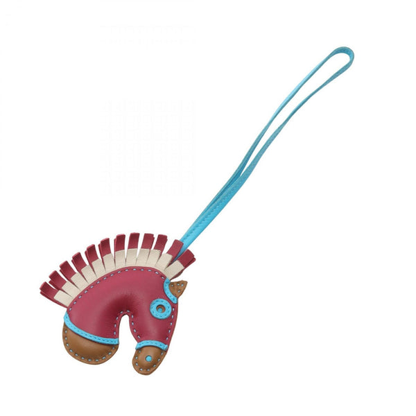 Hermes Hermès GG Camayeu Charm Accessory Leather Anjou Milo Women\'s Bordeaux / Multicolor Ruby Clé Blue Aztec