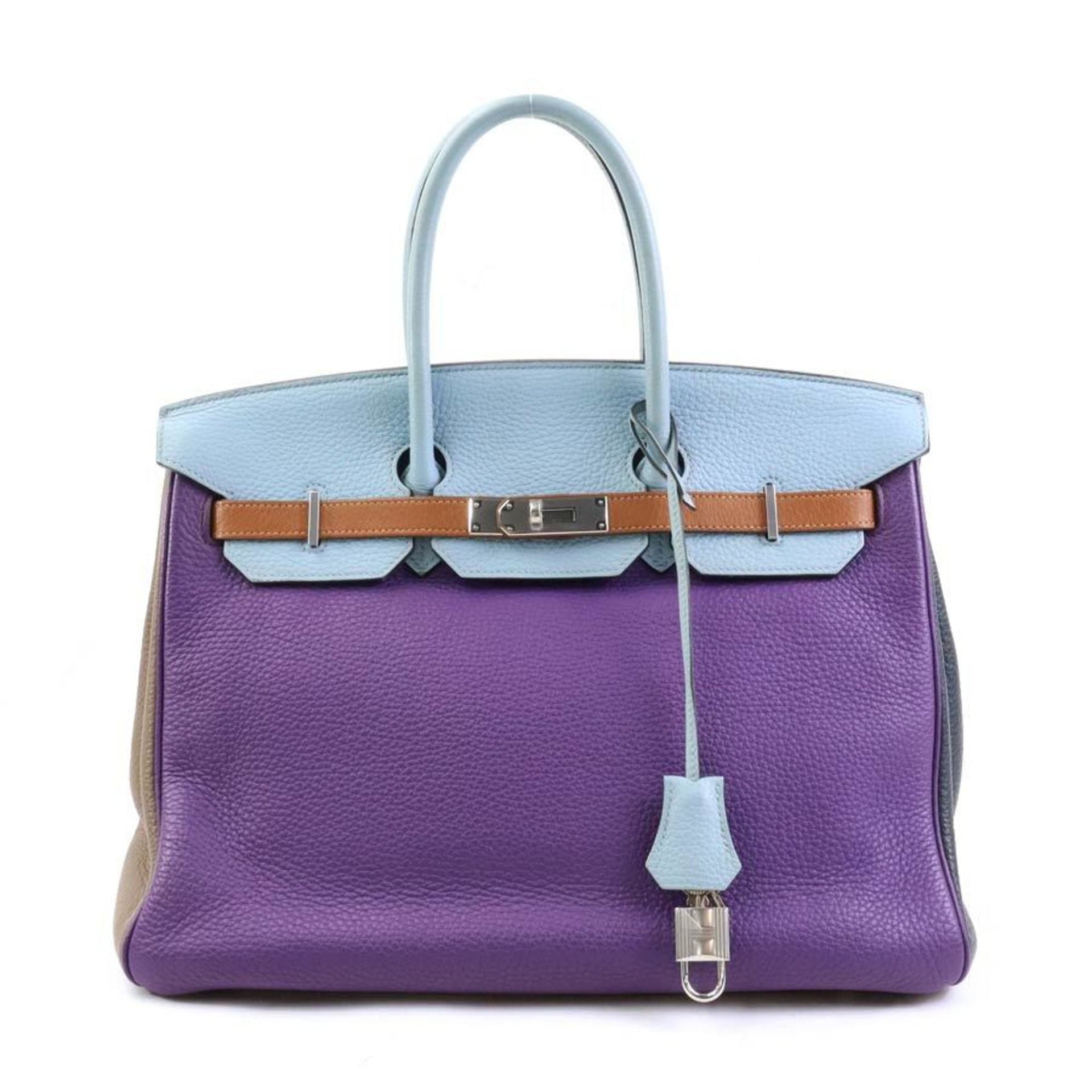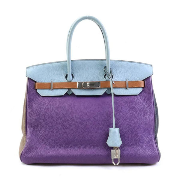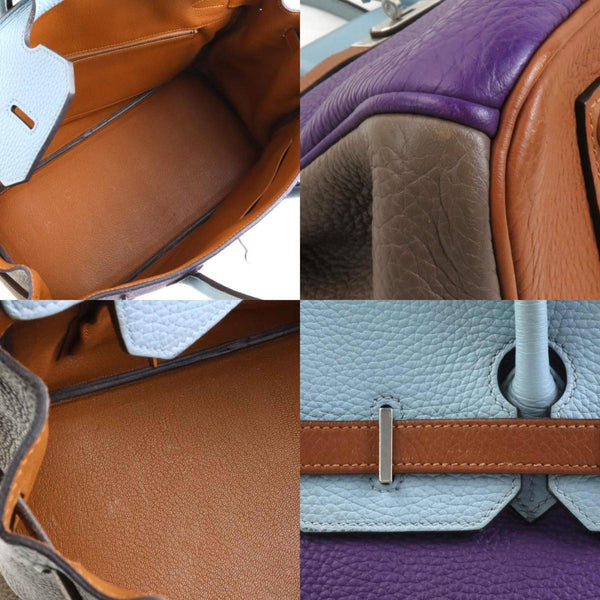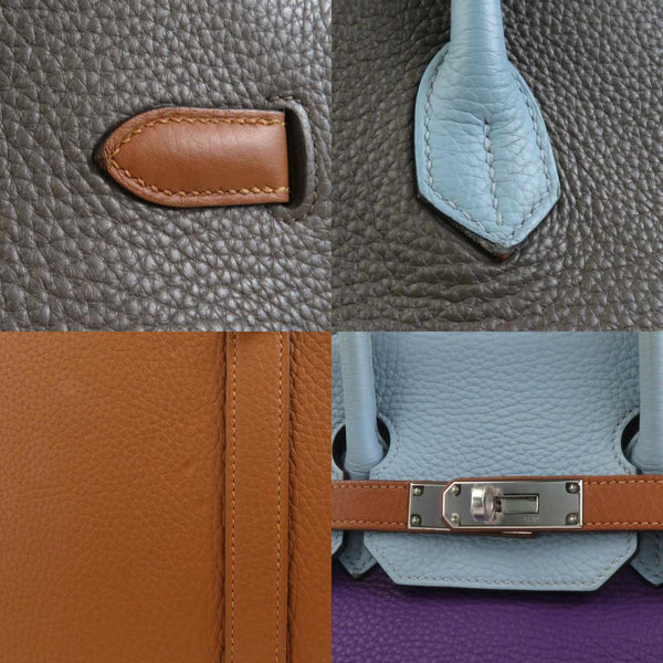 Hermes HERMES Handbag Birkin 35 Harlequin Taurillon Clemence Ultra Violet x Etain Blue Ran Gold Etoupe Obscure Men\'s Women\'s a0537