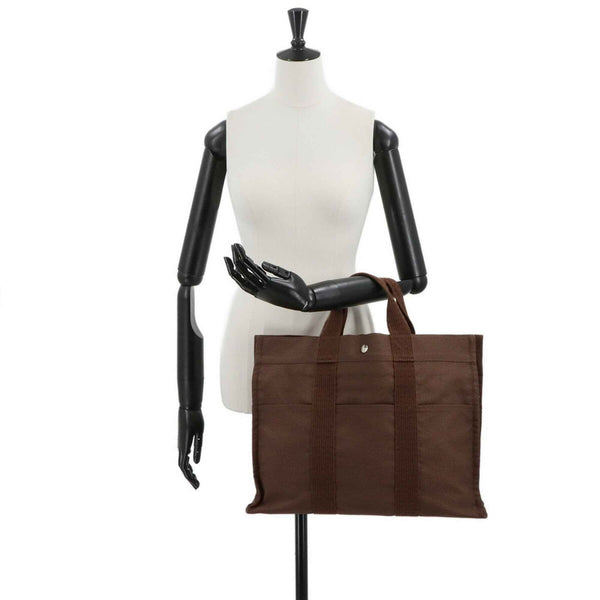 Hermes Hermès Herline MM Tote Bag in Brown Canvas with Silver Hardware