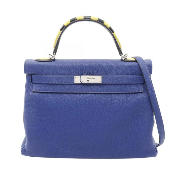 Hermes Hermès Kelly 32 Gallop Handbag, Leather Togo Chevre Togo, Women\'s, Blue, Navy, Blue Indigo, Lime, Vert Foncé