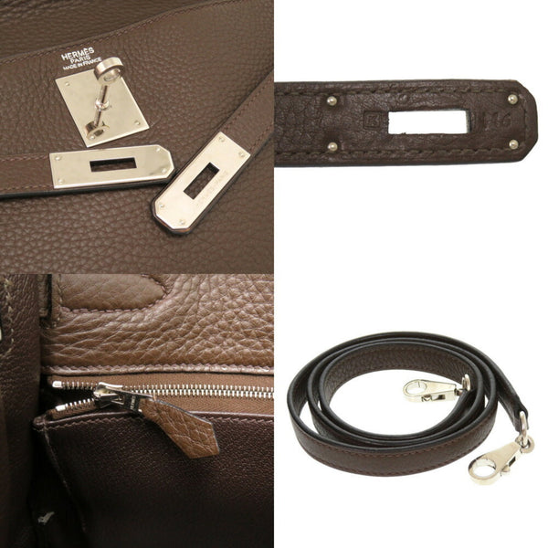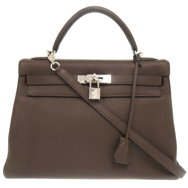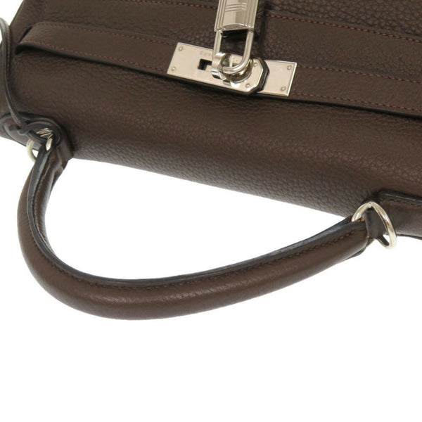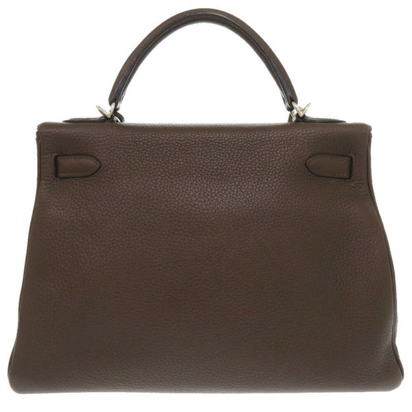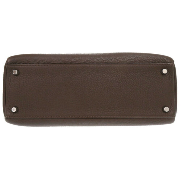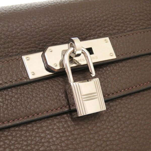 Hermes Hermès Kelly 32, inlaid with Taurillon Clemence leather and Ebene leather, brown, K markings, 0415.