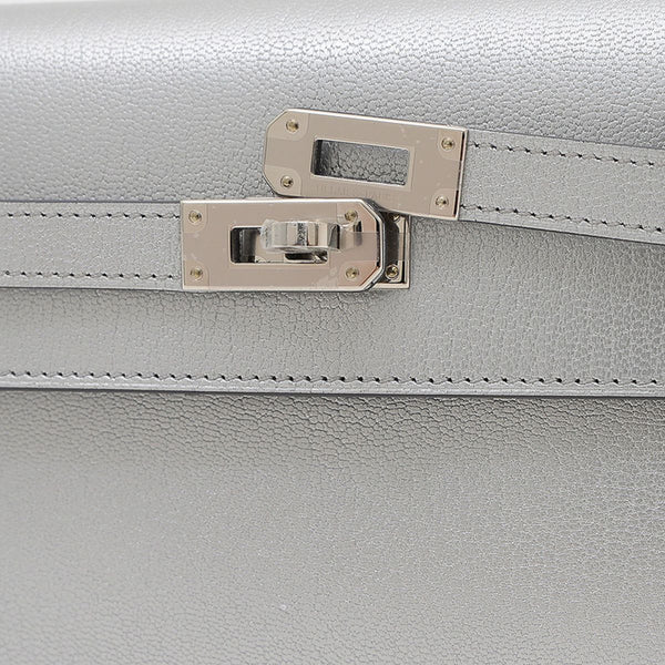Hermes Hermès Kelly To Go Chevre Shamqila Argent Shoulder Bag with Silver Hardware and K Stamp