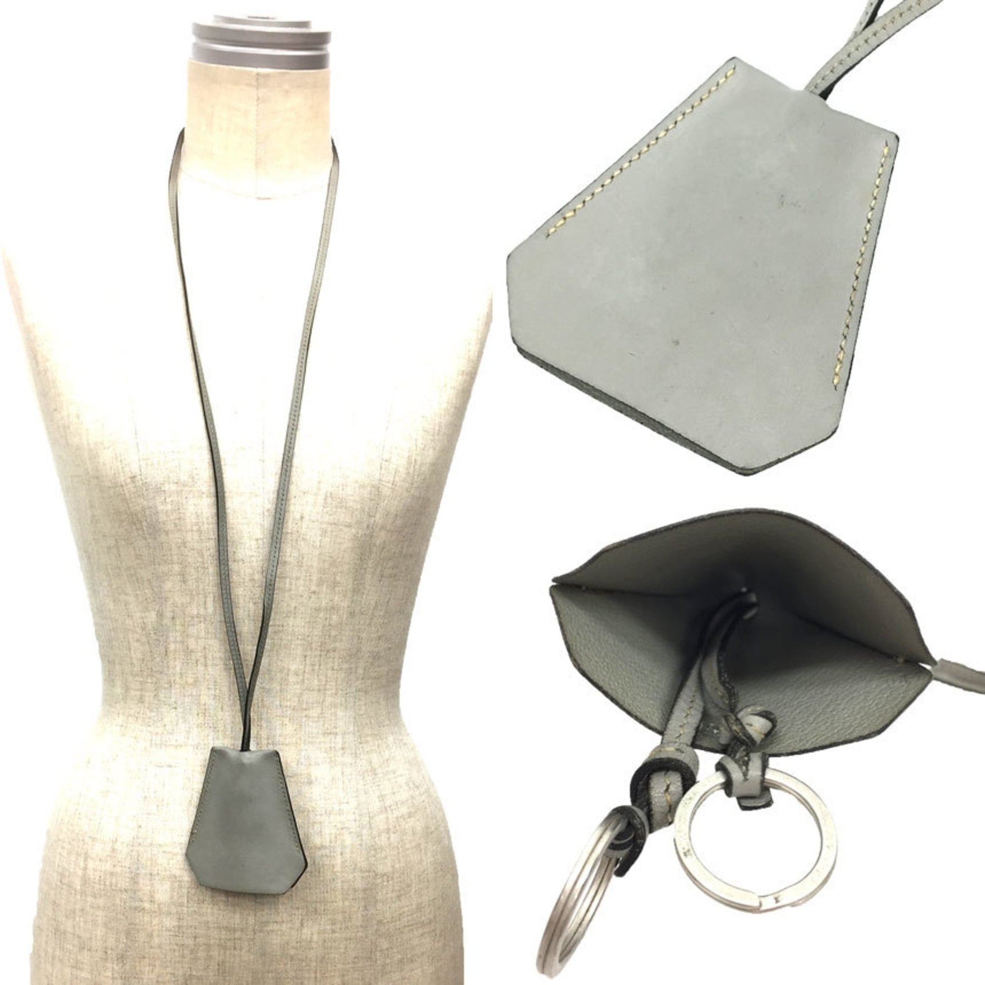 Hermes HERMES Leather Crochet Necklace Keybell Key Ring Holder Charm Gray