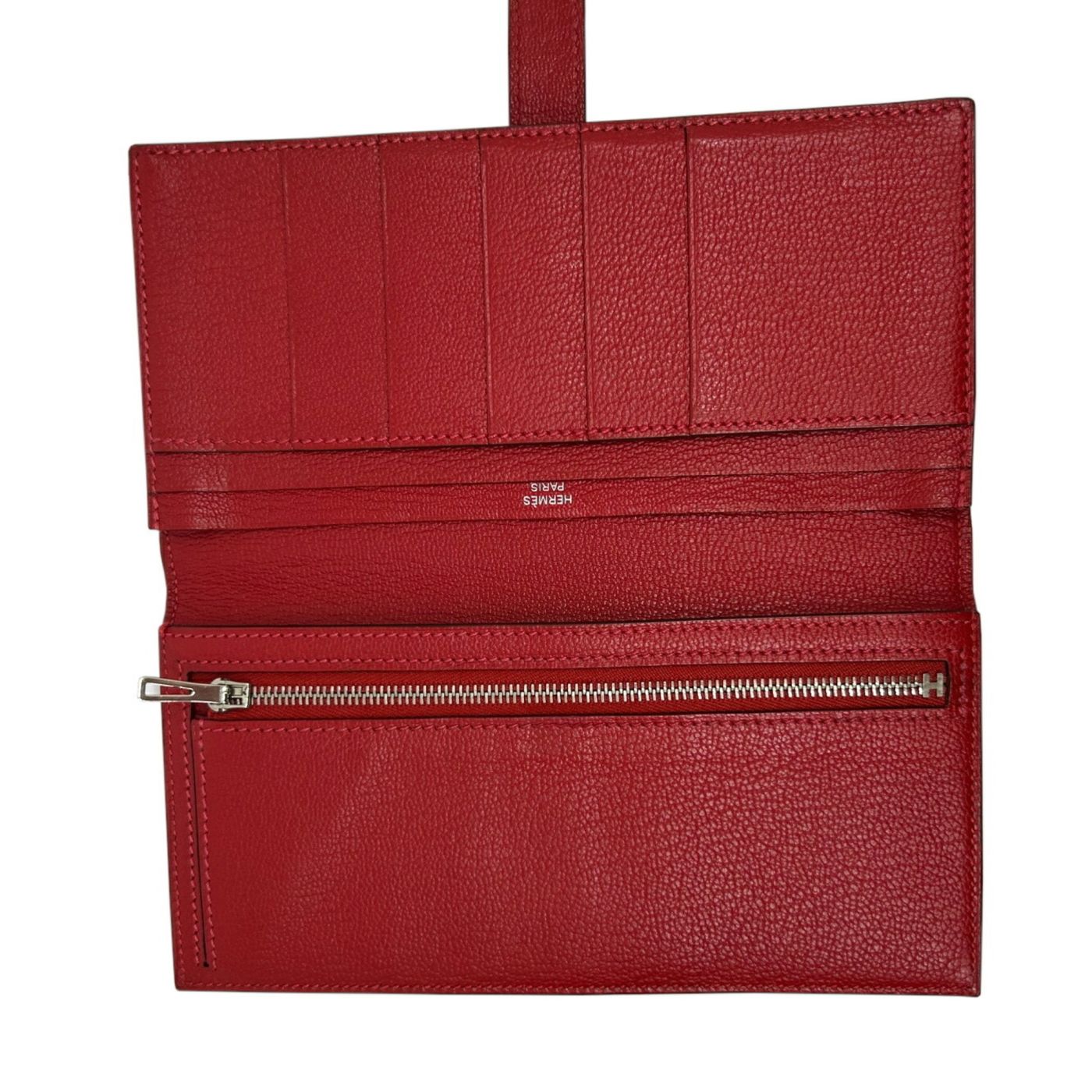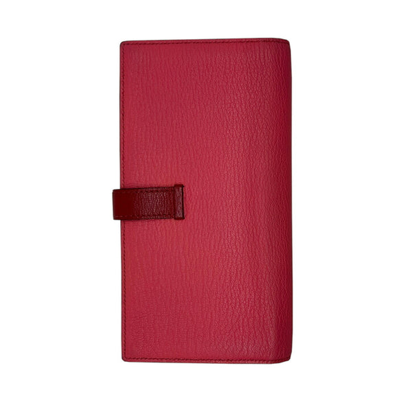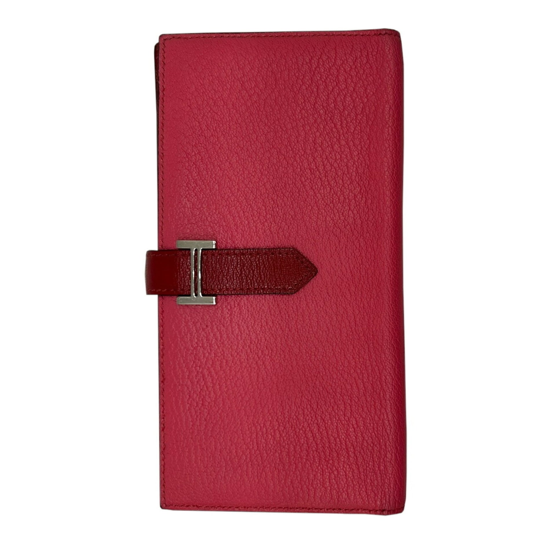 HERMES Hermes Long Wallet Bearn Soufflet Verso Chevre Rose Lipstick Rouge Garance Q□ Engraved 2013 Bicolor Women\'s Men\'s