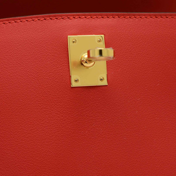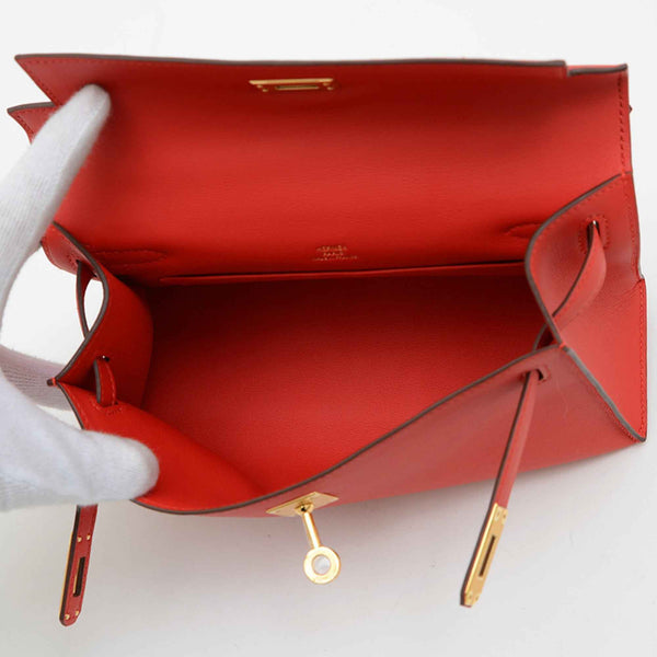 Hermes Hermès Pochette Kelly Handbag Swift Rouge Coupe Gold Hardware K Stamp