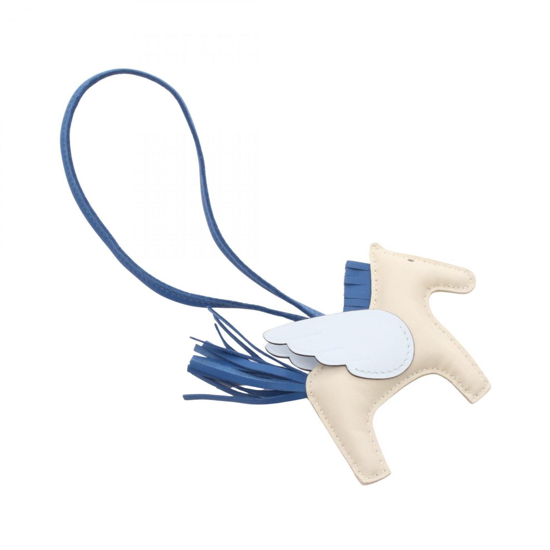 Hermes Hermès Rodeo Pegasus PM Charm Leather Accessory, Anjou Milo, Swift Leather, Women\'s, Ivory, Blue, Blue France, Bleu Brume