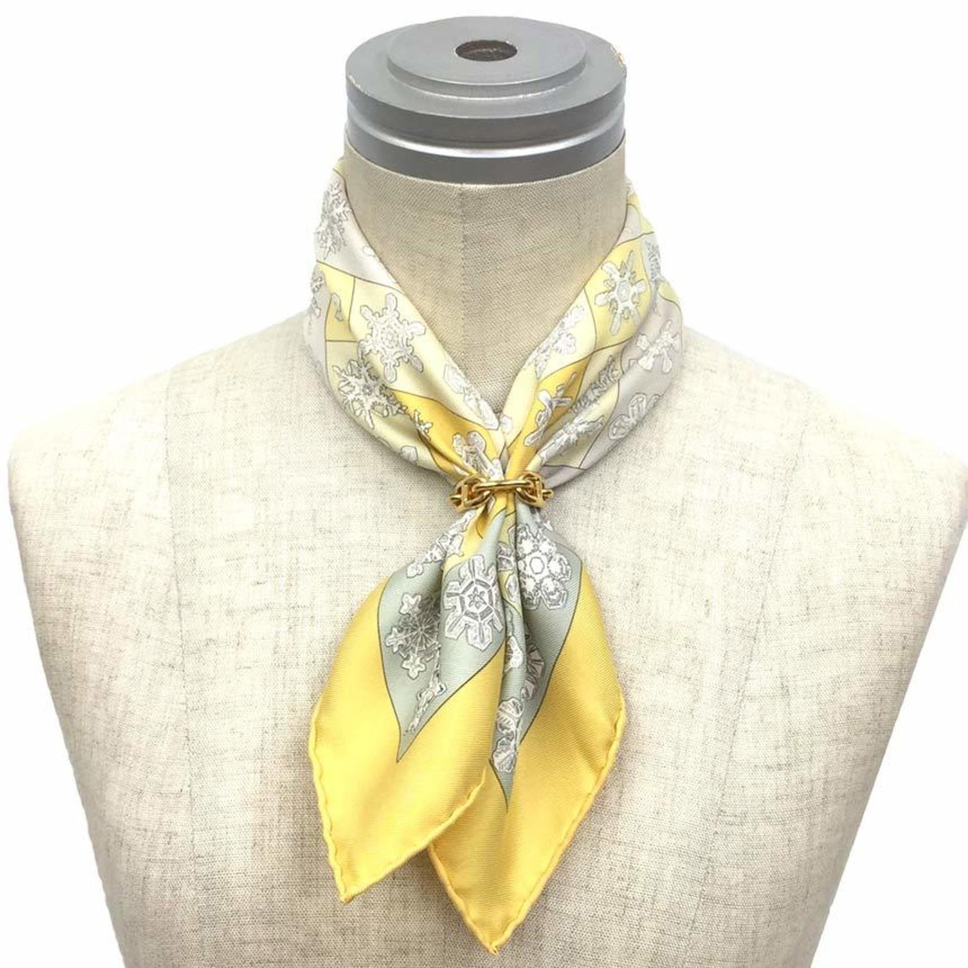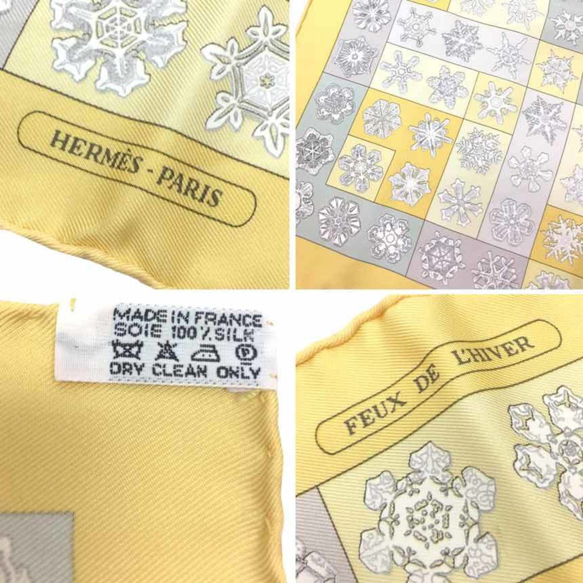 HERMES Hermes Scarf Muffler Carre 45 FEUX DE L\'HIVER (Fire) Snowflake Yellow 100% Silk