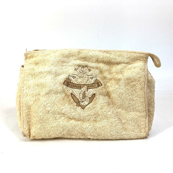 HERMES Hermès second bag, clutch logo, makeup pouch, pile, women\'s, beige