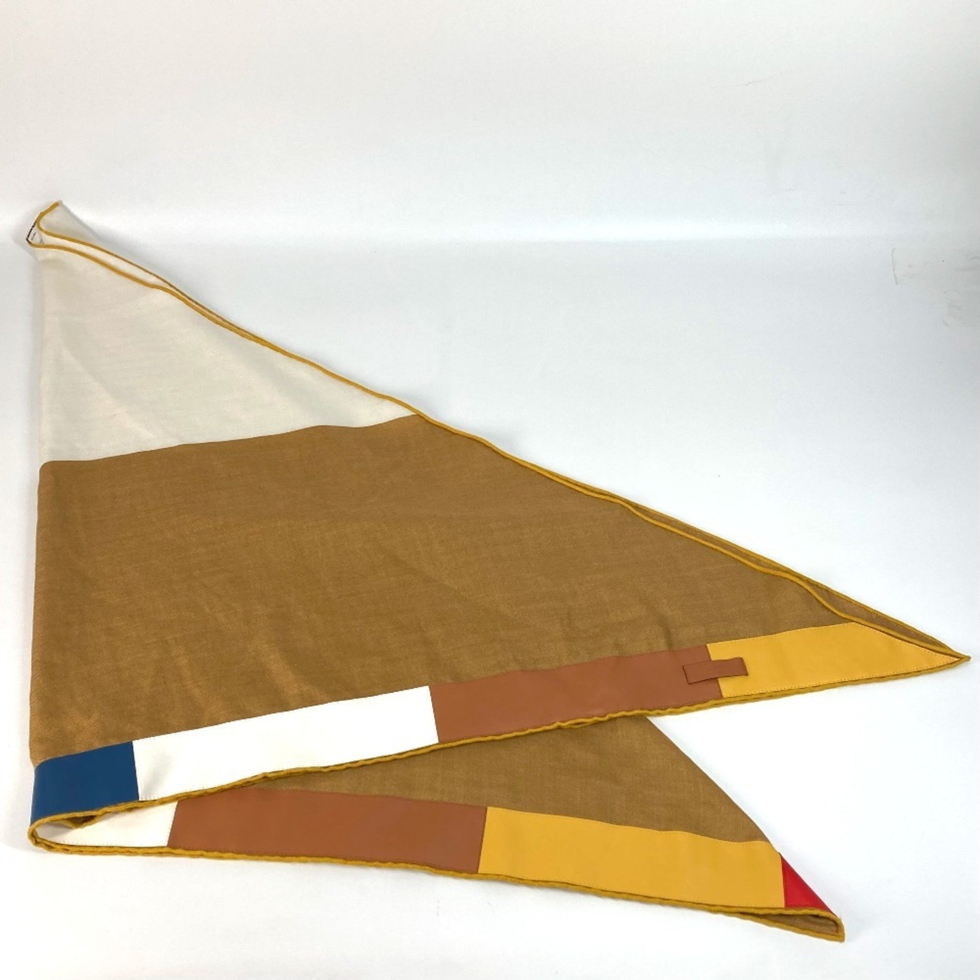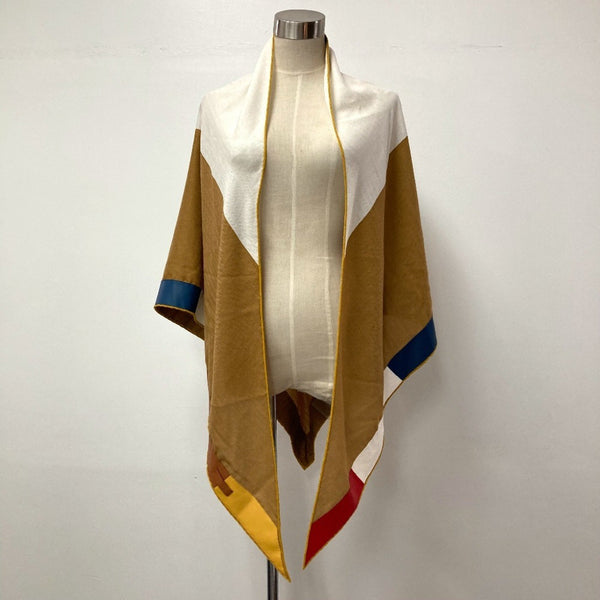 HERMES Hermes Triangle Geant \"Ball d\'Opstacle\" Large Shawl Stole Scarf Cashmere Silk Women\'s White Caramel Curry