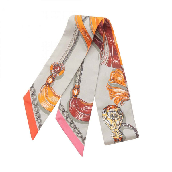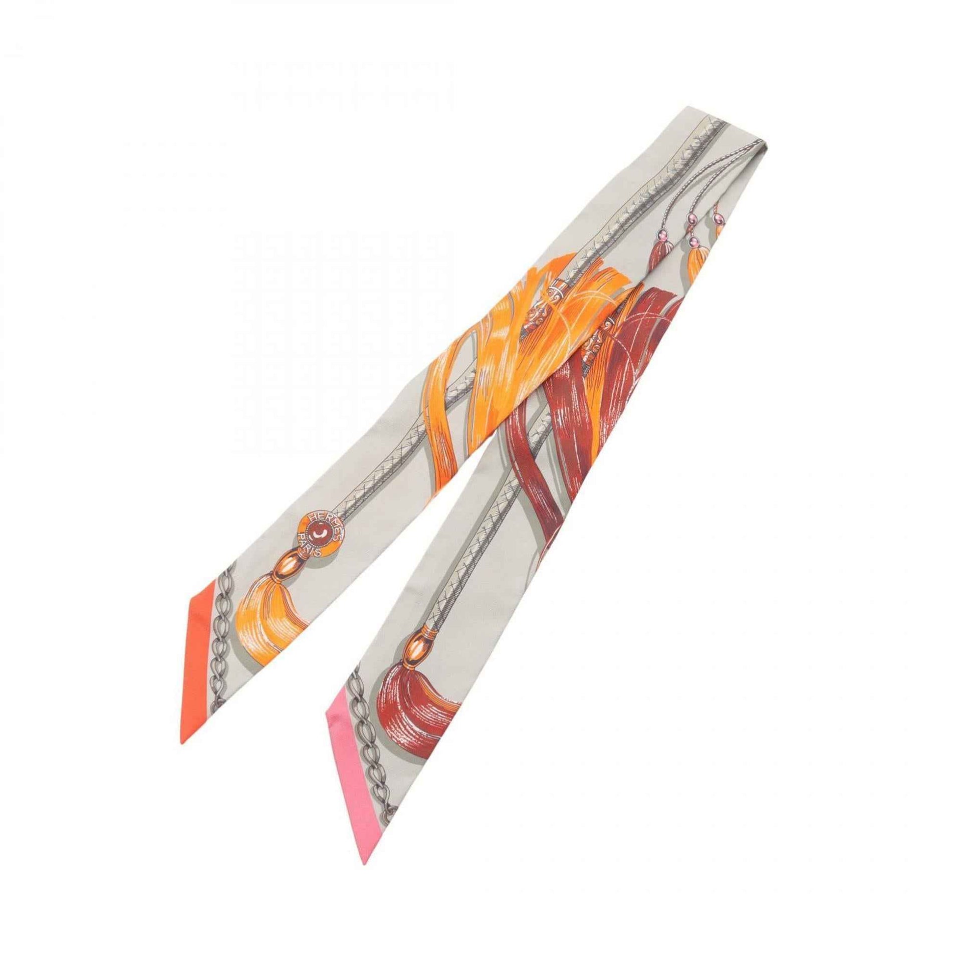 Hermes Hermès Twilly Cavalcades Silk Scarf for Women, Beige, Multicolor
