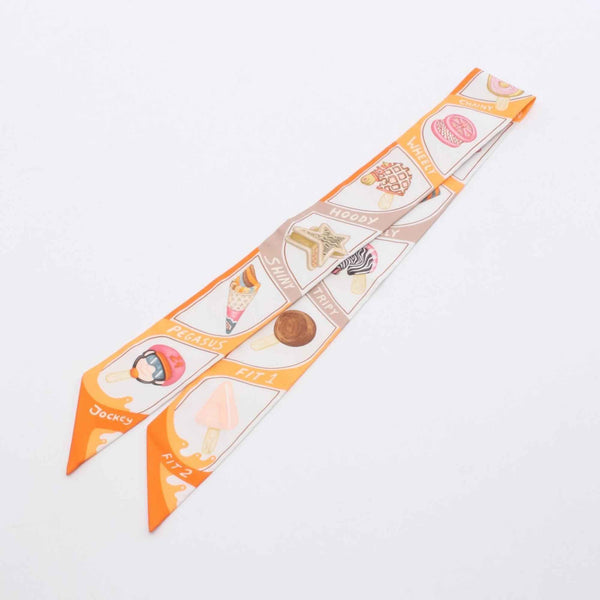 Hermes Hermès Twilly FUNNY ICE CREAM Silk Scarf for Women, Orange, White, Multicolor