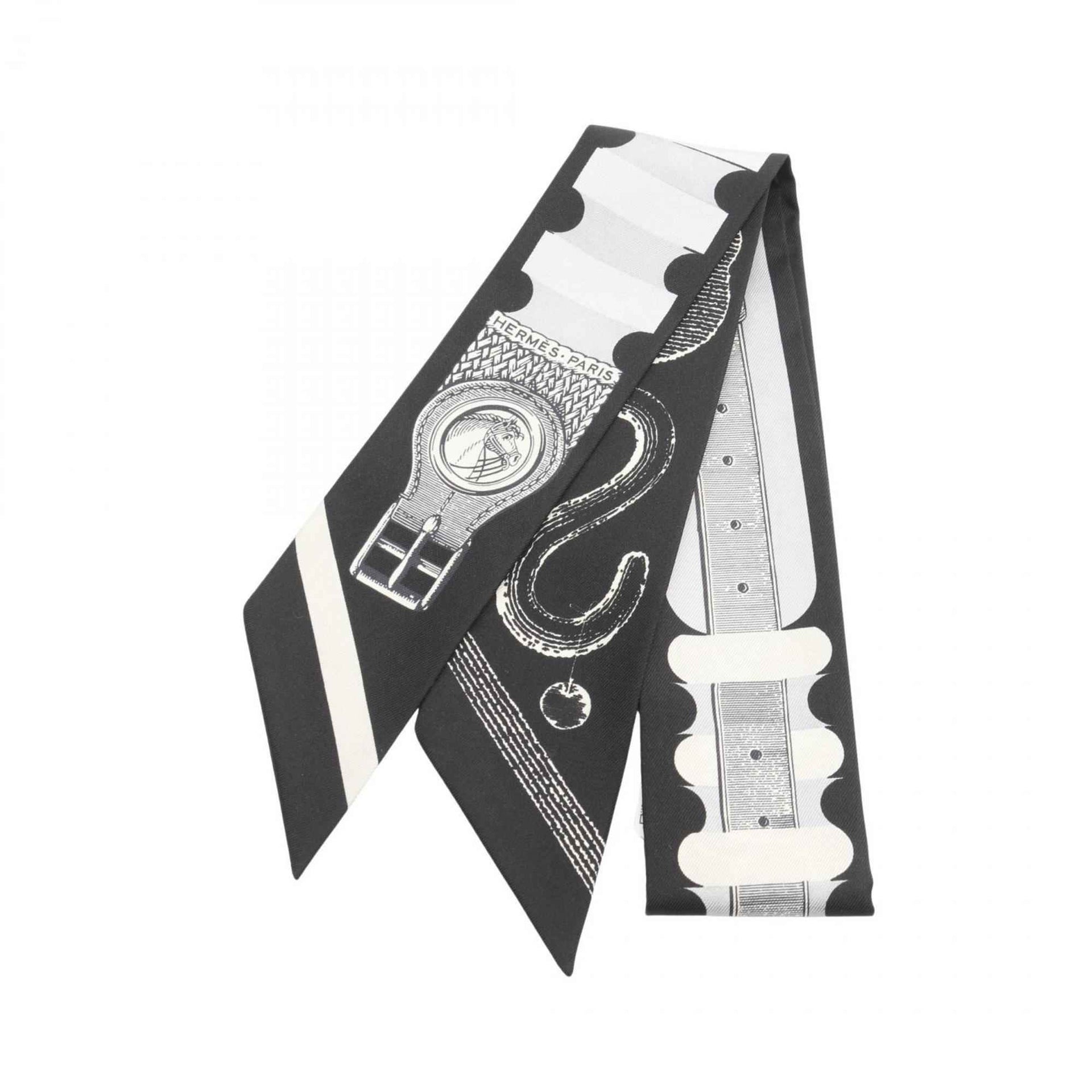 Hermes Hermès Twilly Inventaire Poetique de Brides a Bloc Silk Scarf for Women in Black and Multicolor