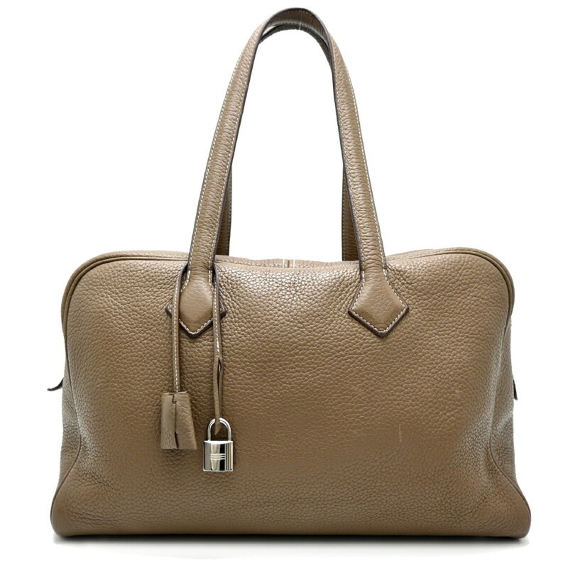 Hermes Hermès Victoria 35, 2013 (palladium) Boston bag in Taurillon Clemence Etoupe leather, with a Q stamp.