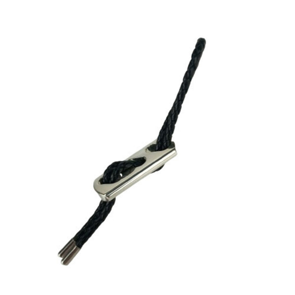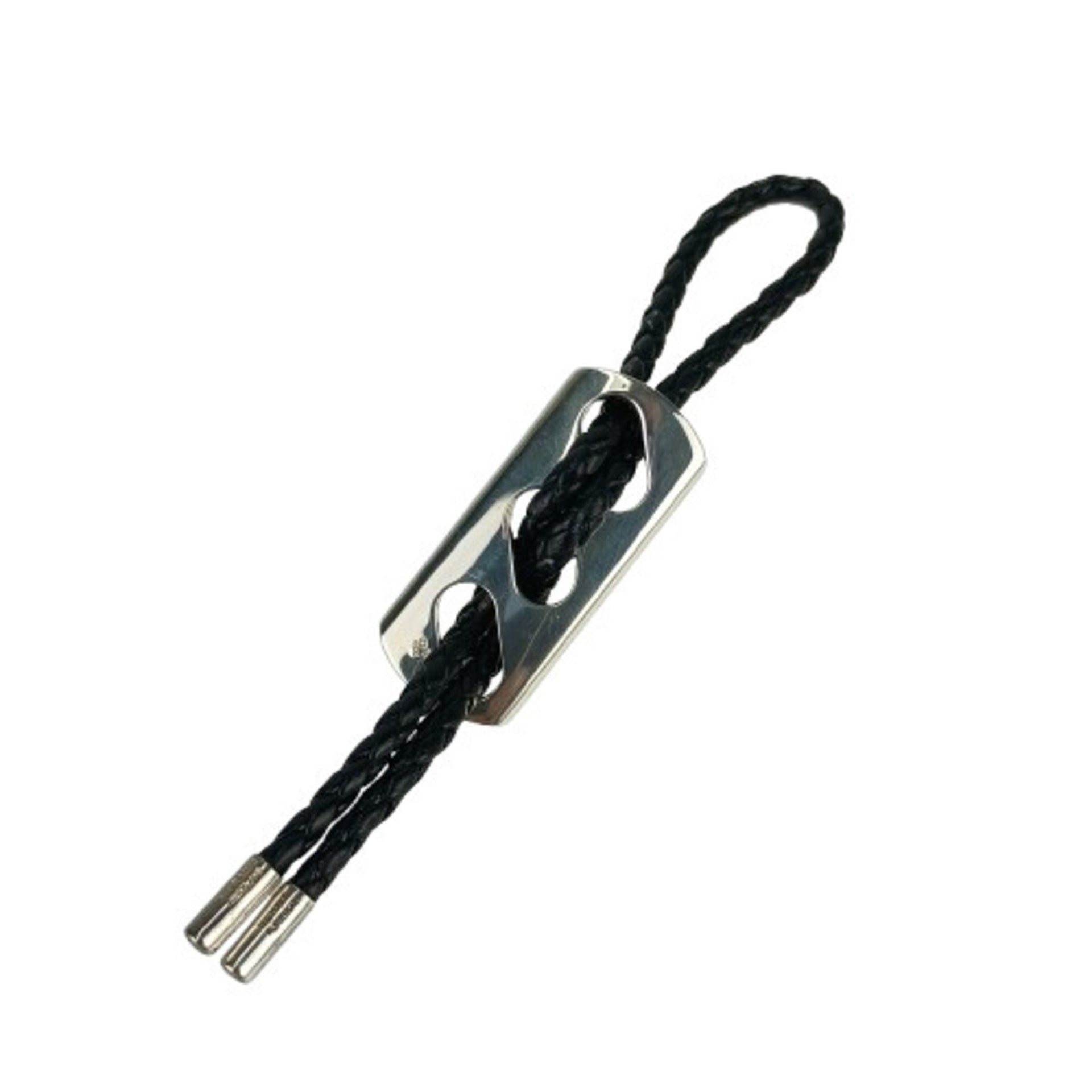 HERMES Keychain Charm - Black Silver Leather Ag925 for Men and Women