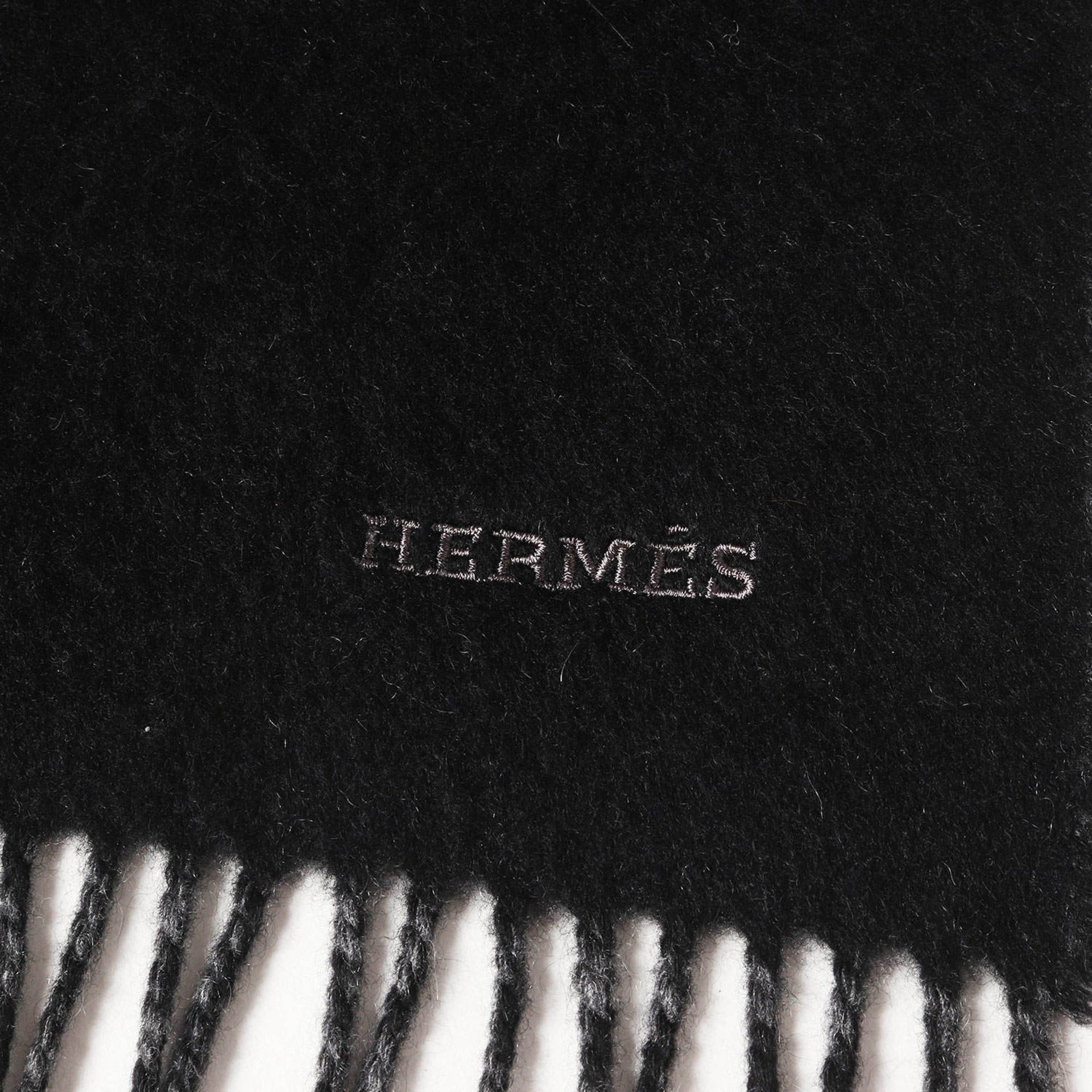 HERMES Men\'s Black Embroidered Cashmere Scarf/Stole, Made in England, K4618