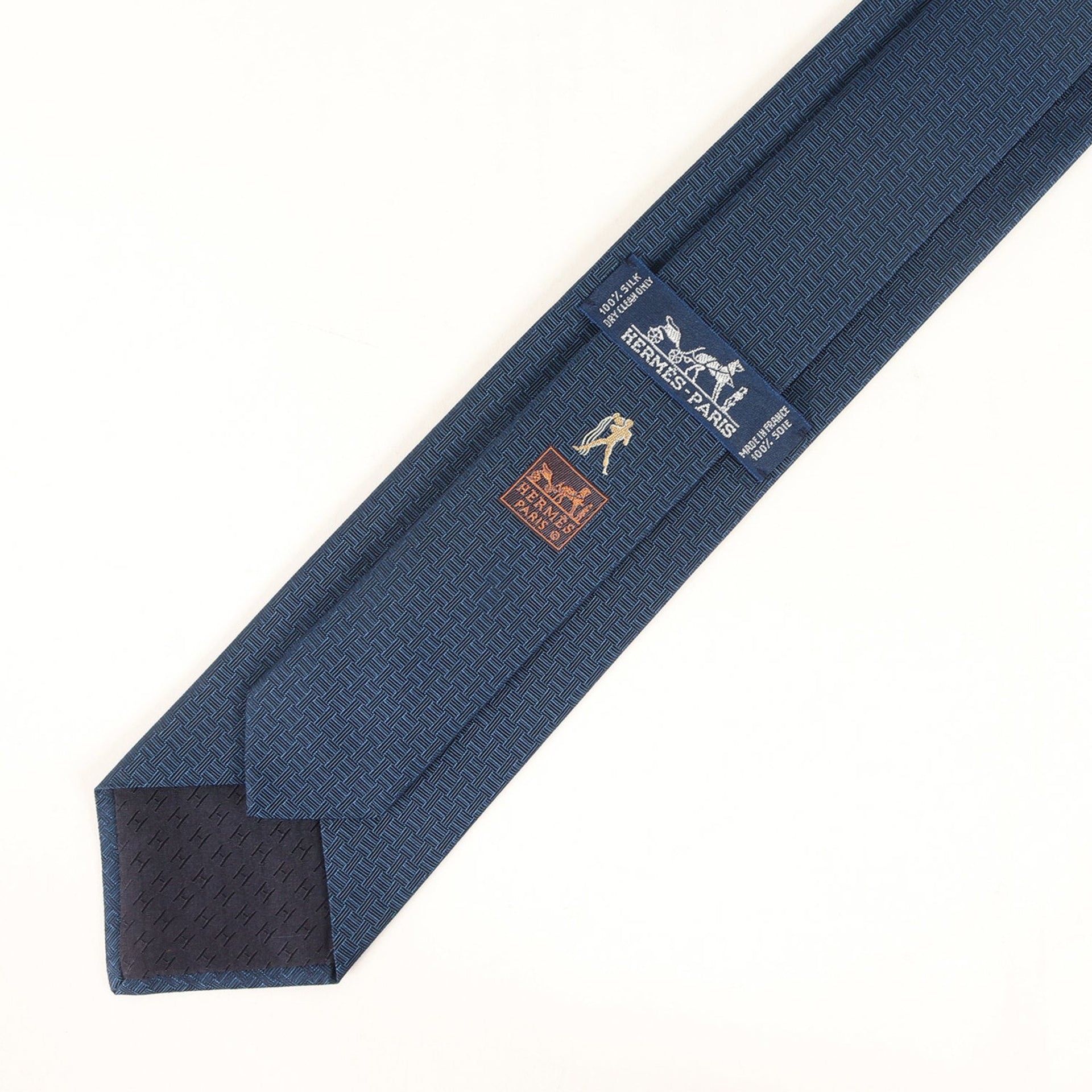 HERMES Men\'s H-woven Constellation Jacquard Silk Tie 428898T02 Navy Blue K4615