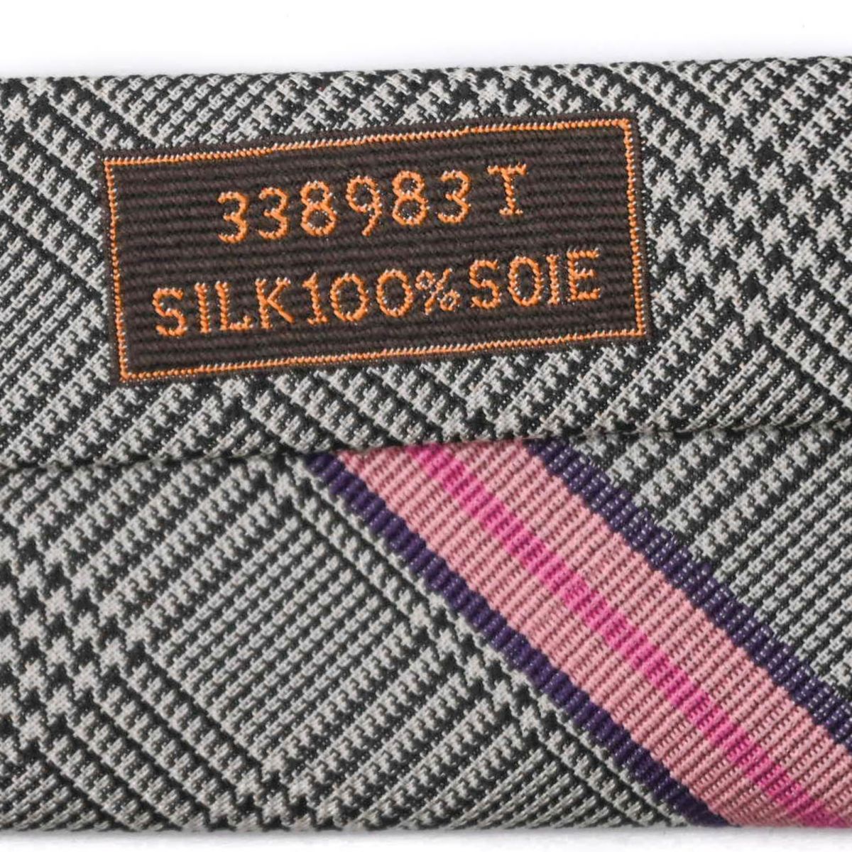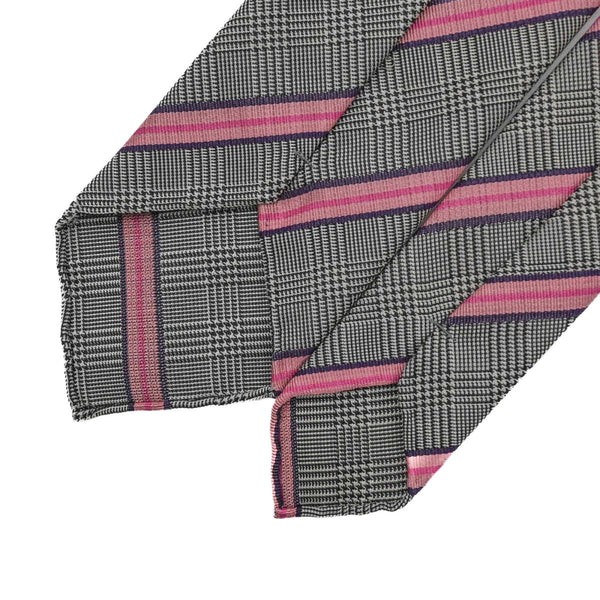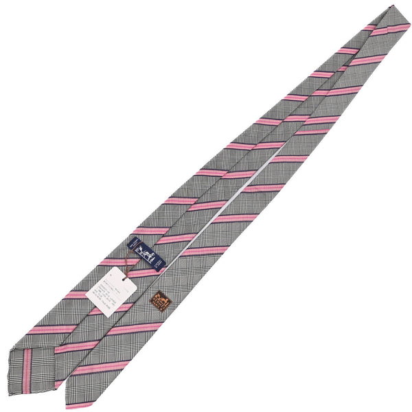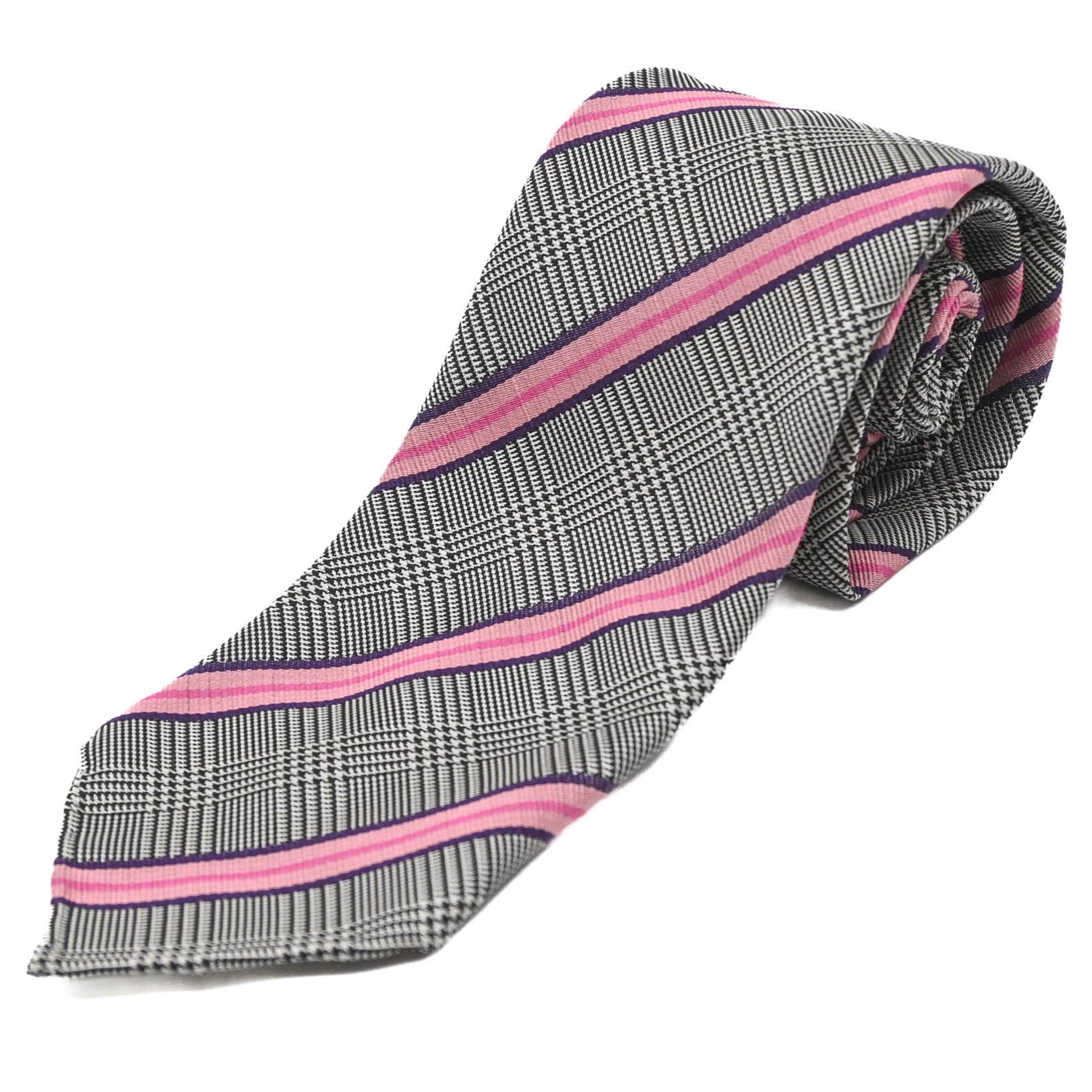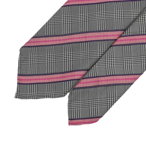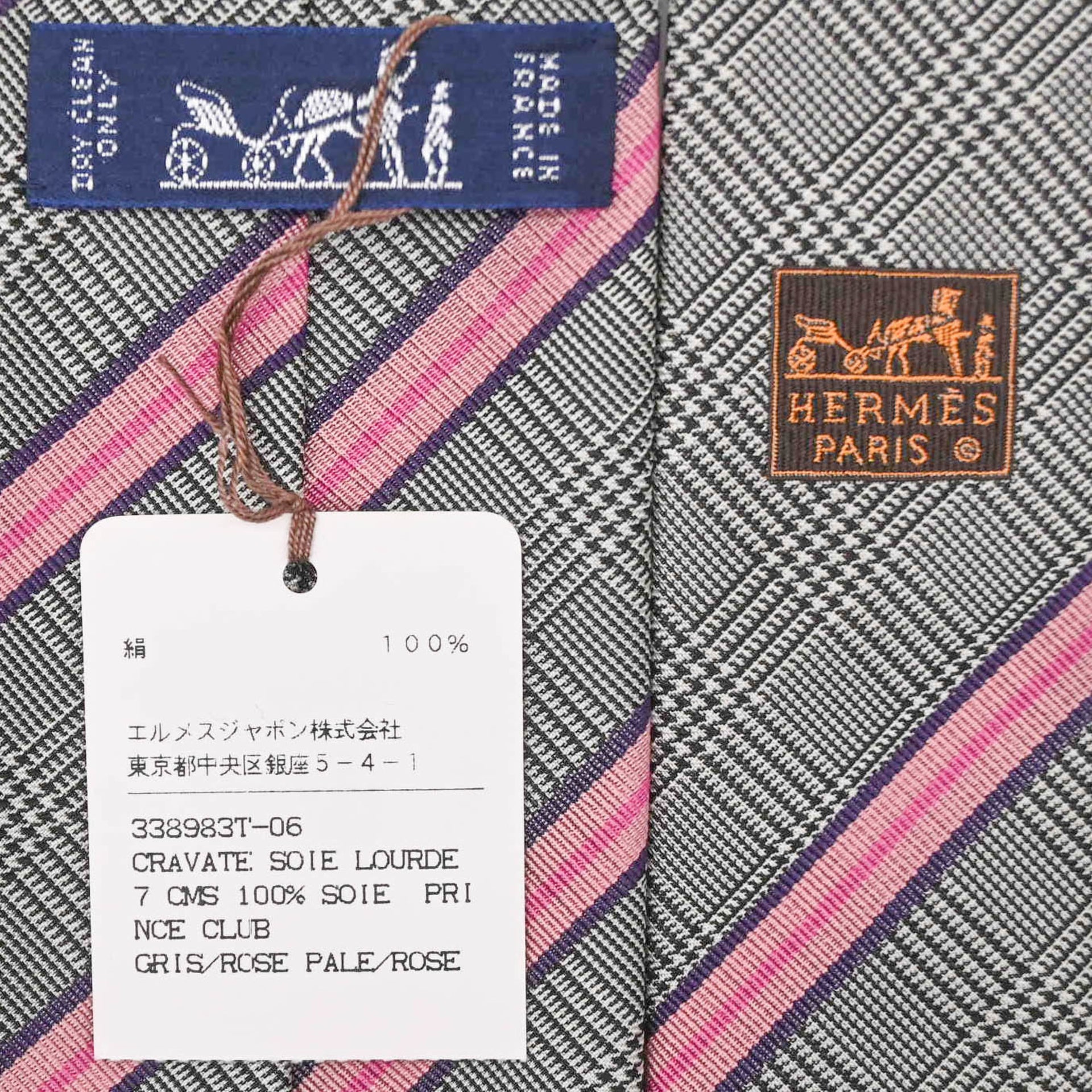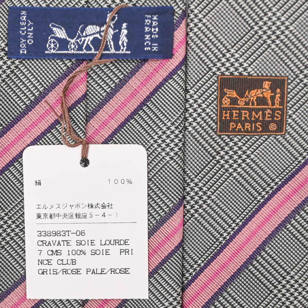 HERMES Men\'s Striped Silk Tie in White, Pink, and Multicolor