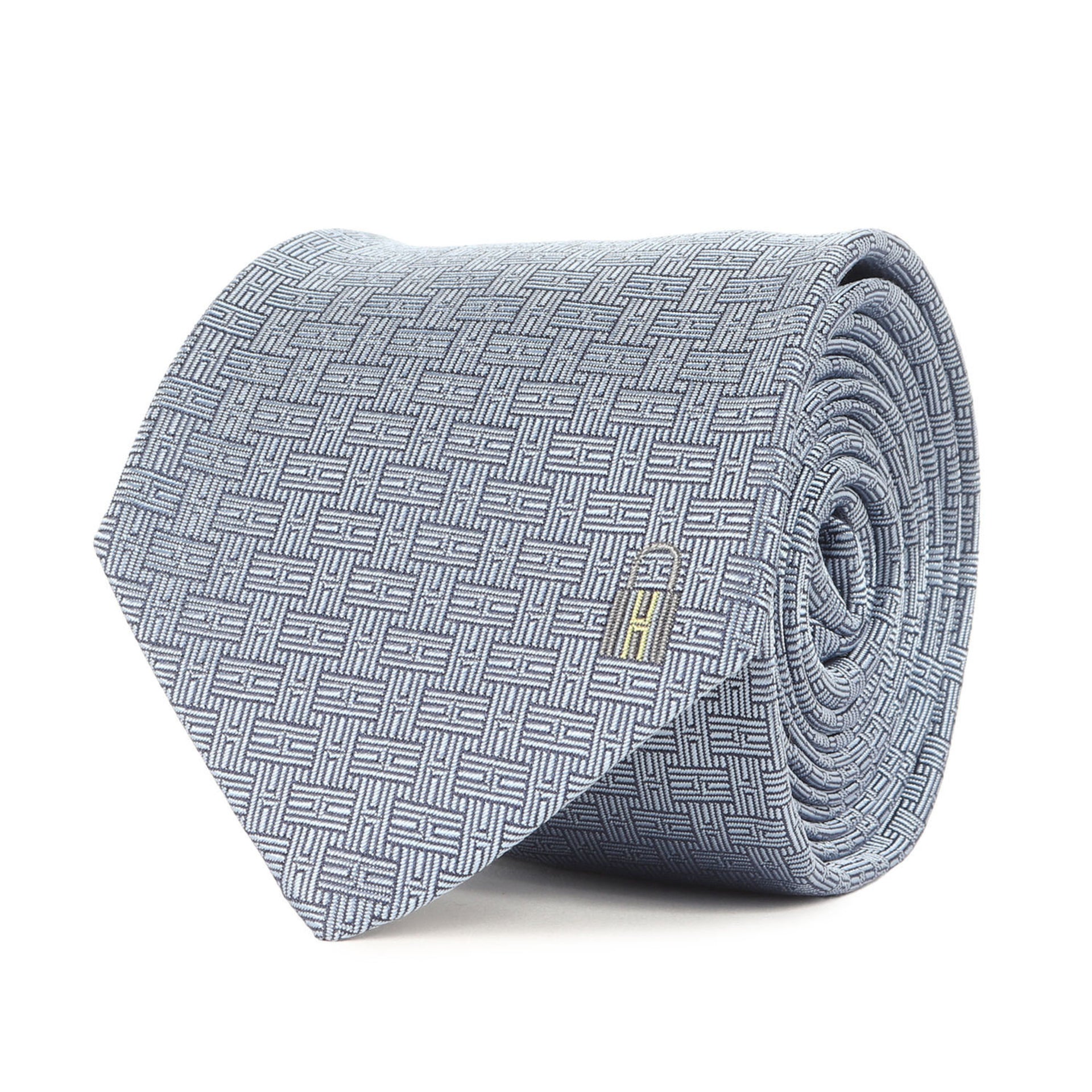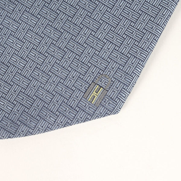 HERMES Men\'s Tie, Padlock, Cadena, Embroidered H, Woven Silk, Light Blue, K4613