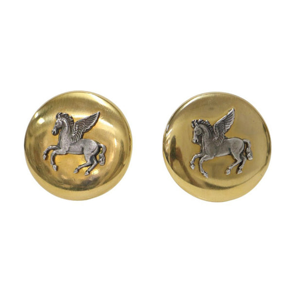 HERMES Pegasus Earrings, Horse, Gold and Silver, Women\'s, K4617