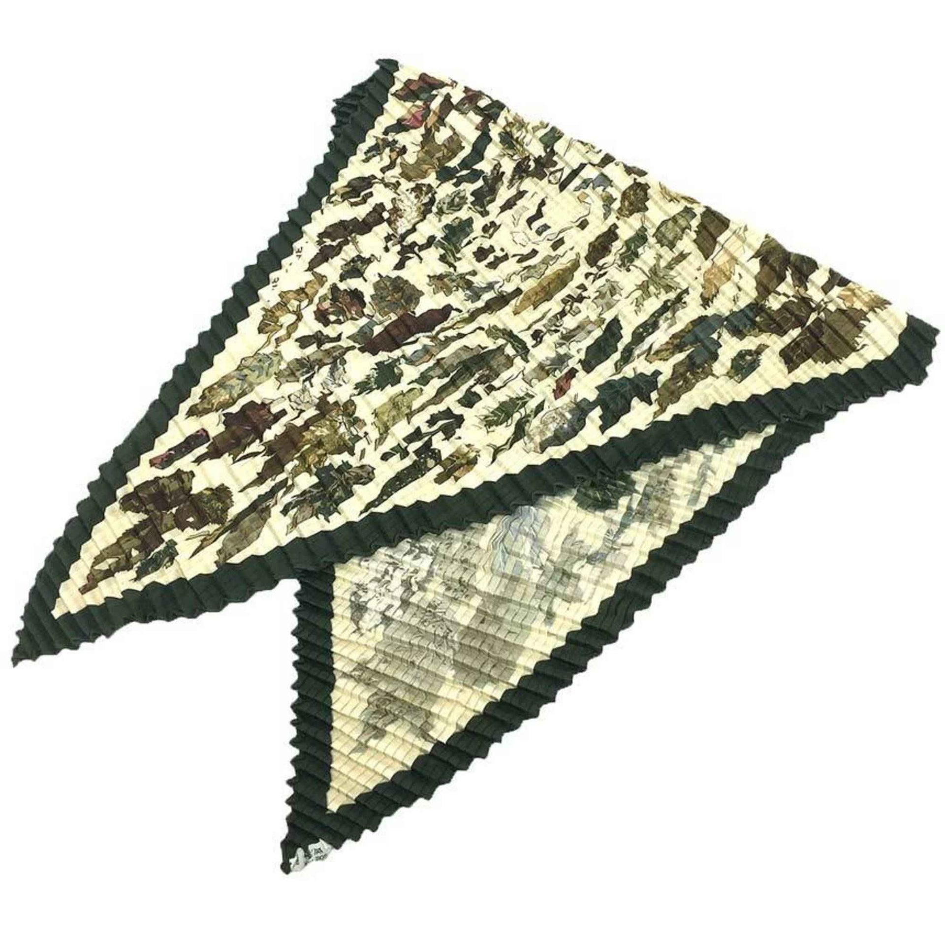 HERMES Pleated Scarf/Muffler, 100% Silk, Tourbillon/Gale/Spiral, Fallen Leaves, Plissee Carre, Carre 90, Beige/Khaki