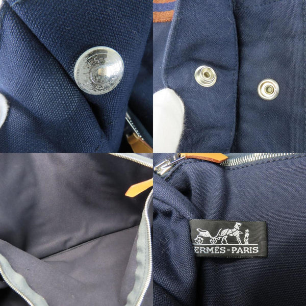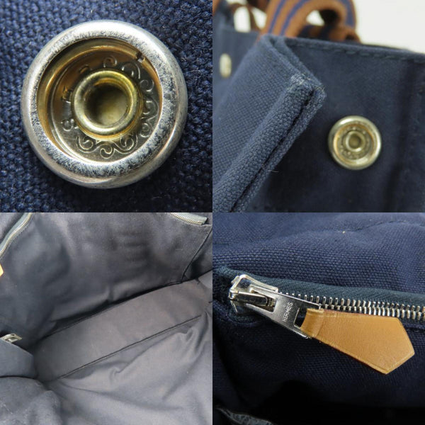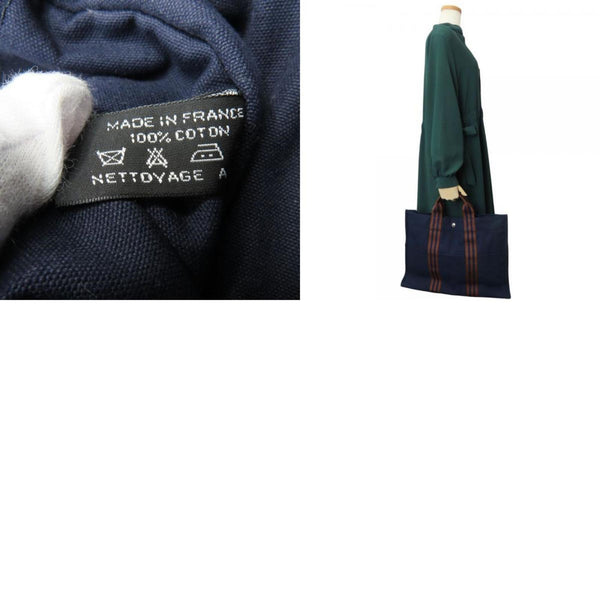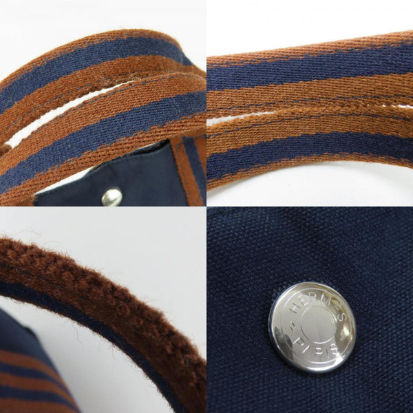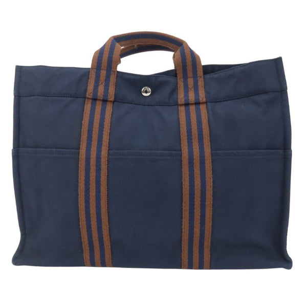 Hermes Tote Bag, Foul Tou MM, Cotton Canvas, Navy and Brown, Women\'s, HERMES
