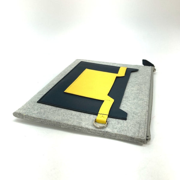 HERMES Toudou 29 Pouch, Second Bag, Clutch Felt/Epson, Men\'s, Gray/Yellow