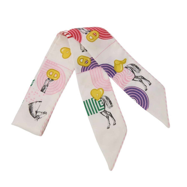 HERMES Twilly Garde Robe Pop Silk Scarf/Muffler in White and Pink for Women