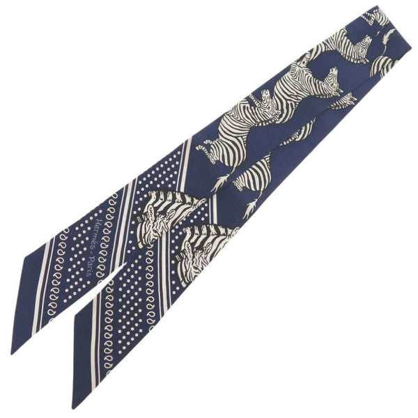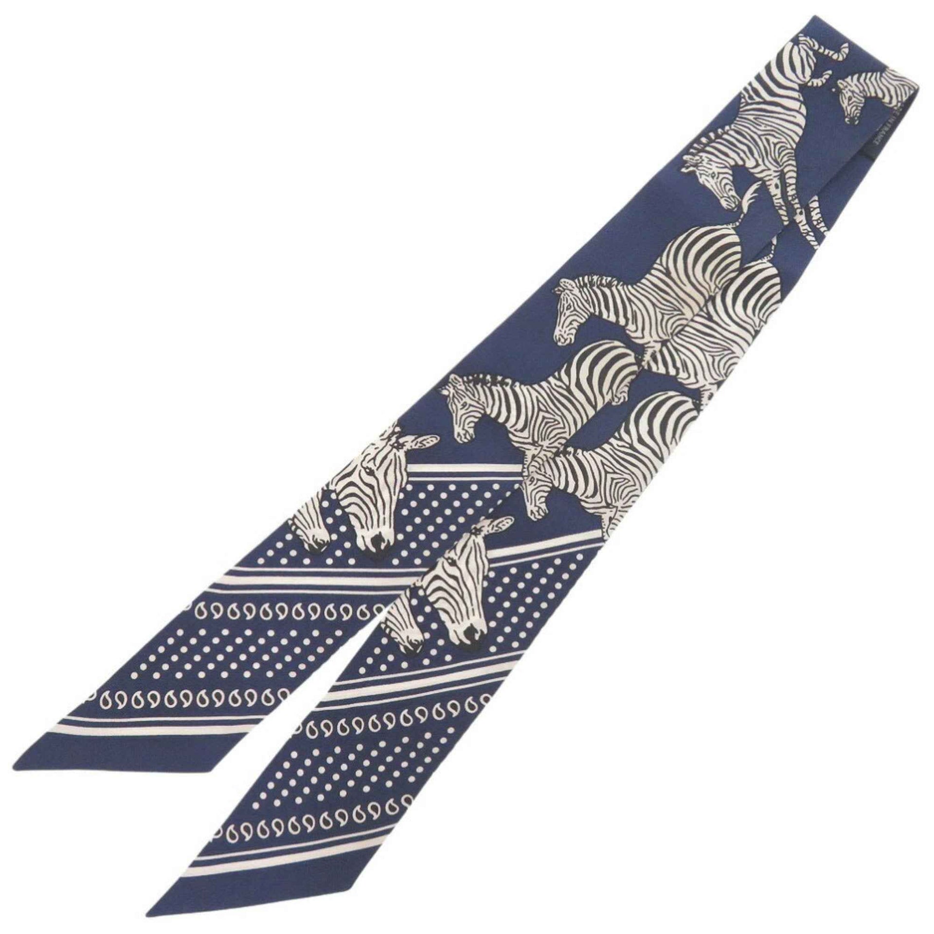 Hermès Twilly LES ZEBRES Silk Navy Scarf Muffler 0331-2HERMES