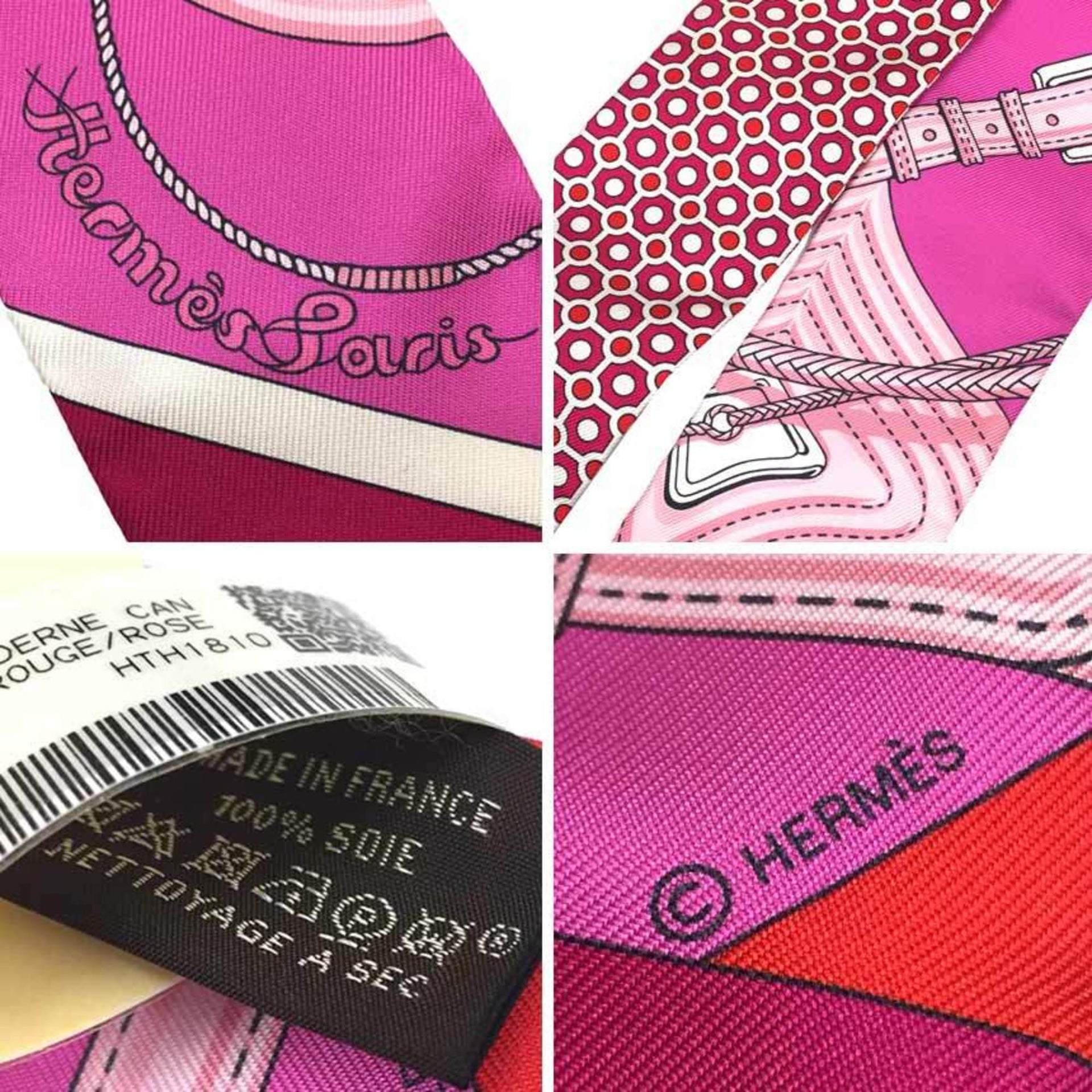 HERMES Twilly Scarf Muffler CLIC CLAC MODERN CANNAGE Click Clack Modern Cannage 2018 Fuchsia/Rouge/Rose Ribbon tie scarf 100% silk Hermes Silk