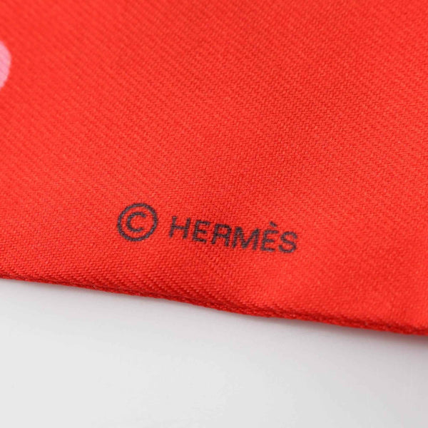 Hermes Twilly Tea Time Scarf Silk Women\'s Red Multicolor