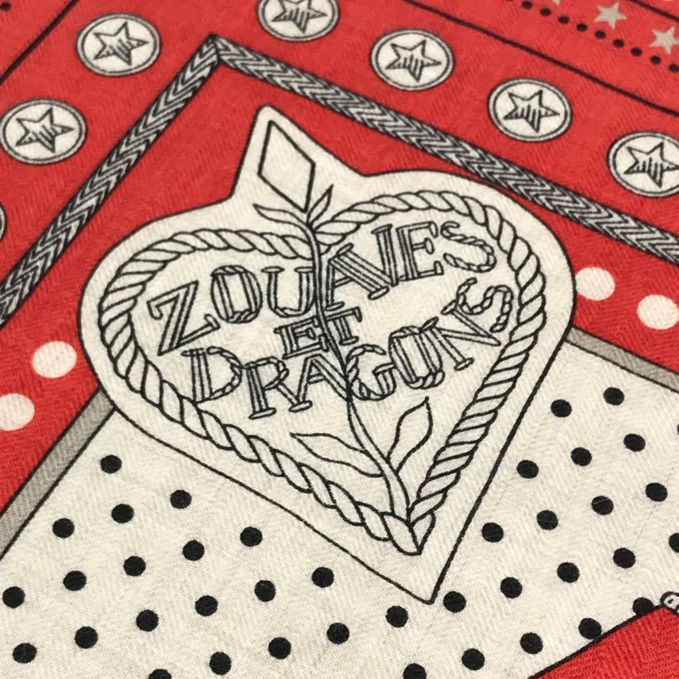 HERMES Zouaves et Dragons Carré Geans 140 Large Cashmere/Silk Shawl/Stole/Scarf/Muffler Women\'s Red Like New