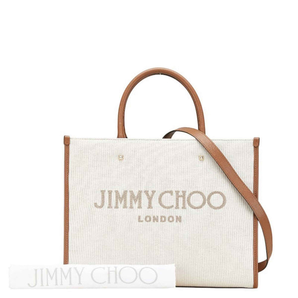 Jimmy Choo Avenue handbag/shoulder bag, 2-way, beige/brown canvas and leather, women\'s.