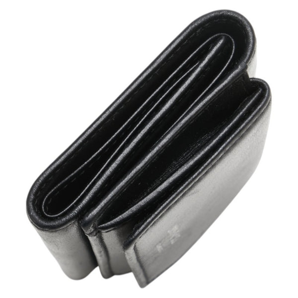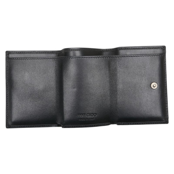 Jimmy Choo HAWLEY tri-fold wallet in black leather for women.