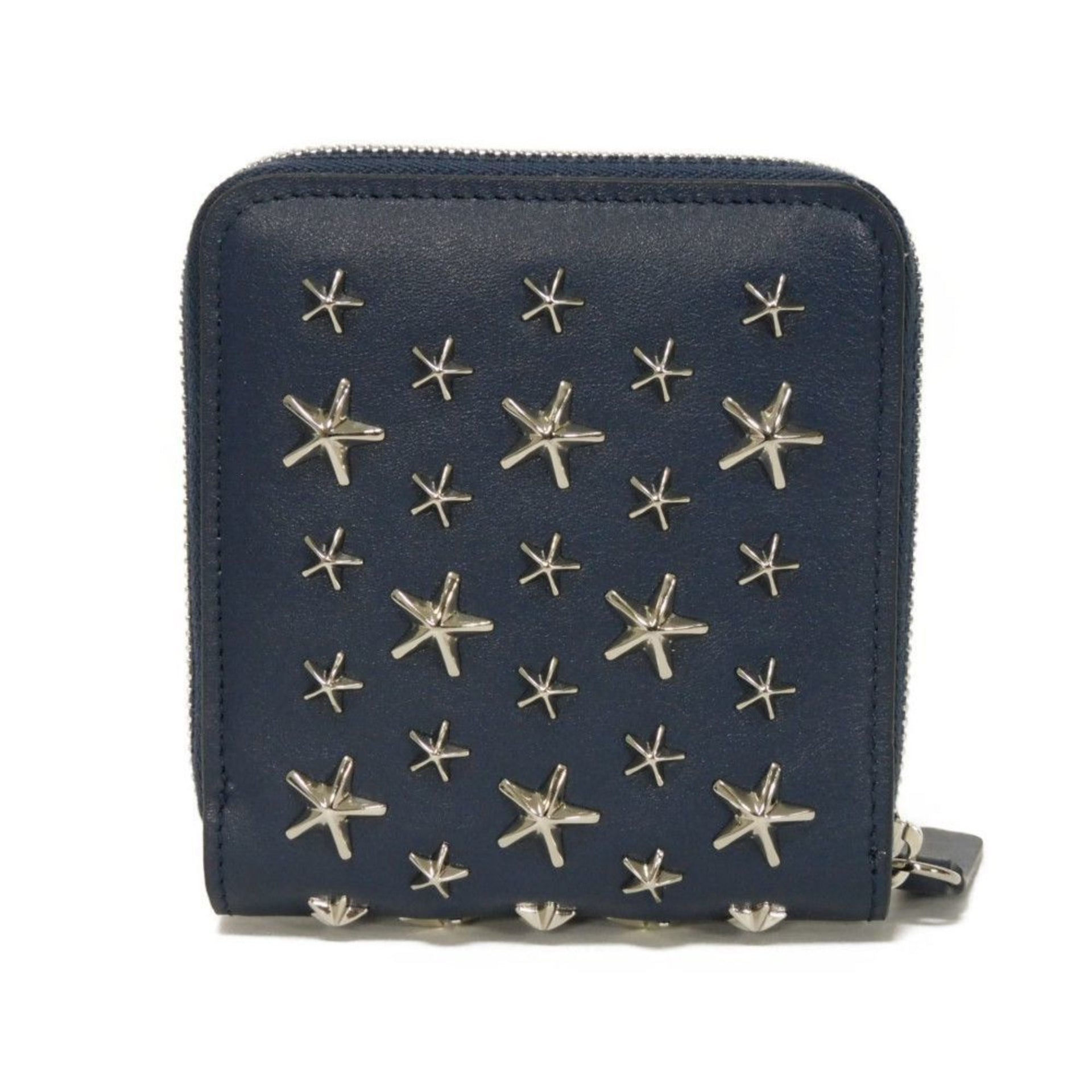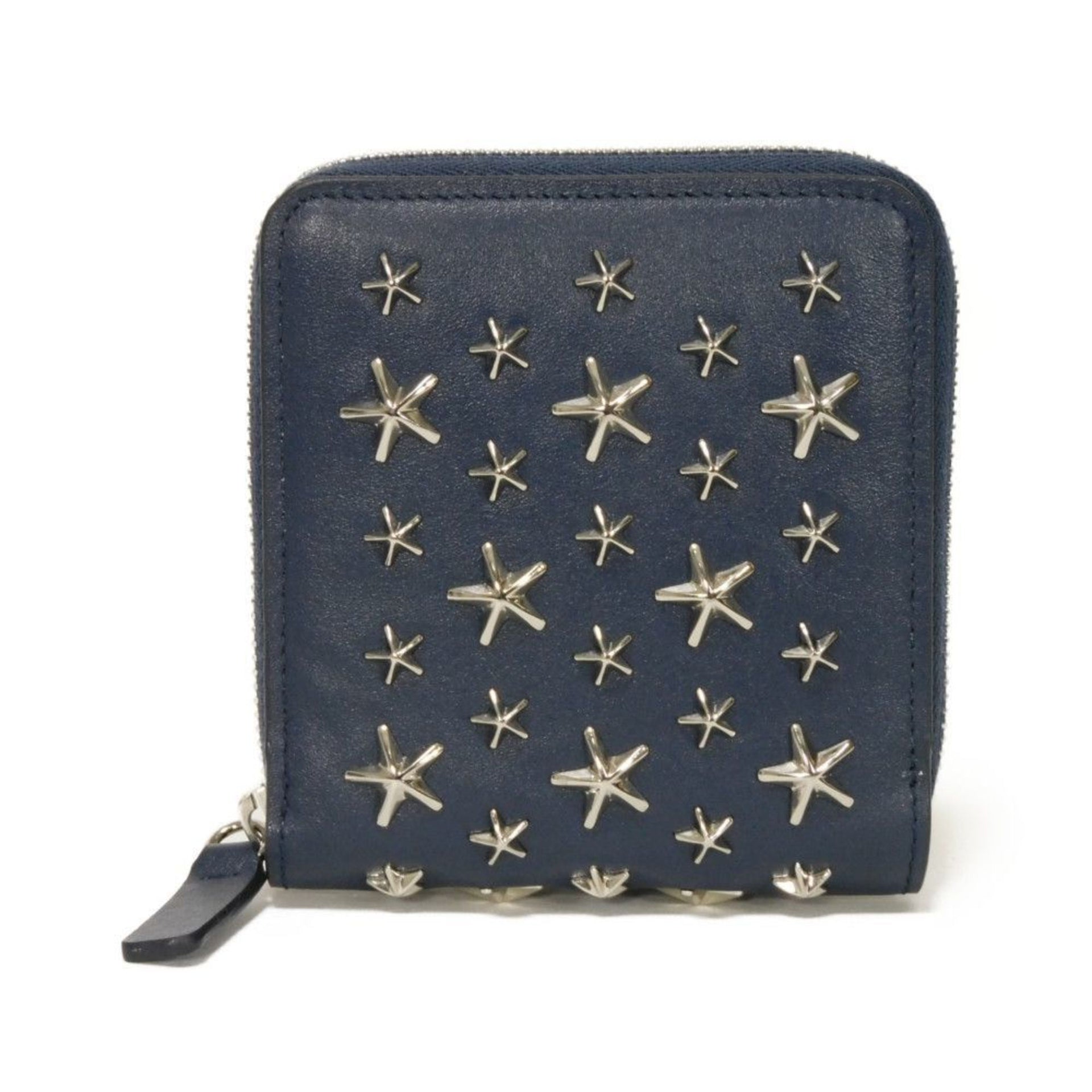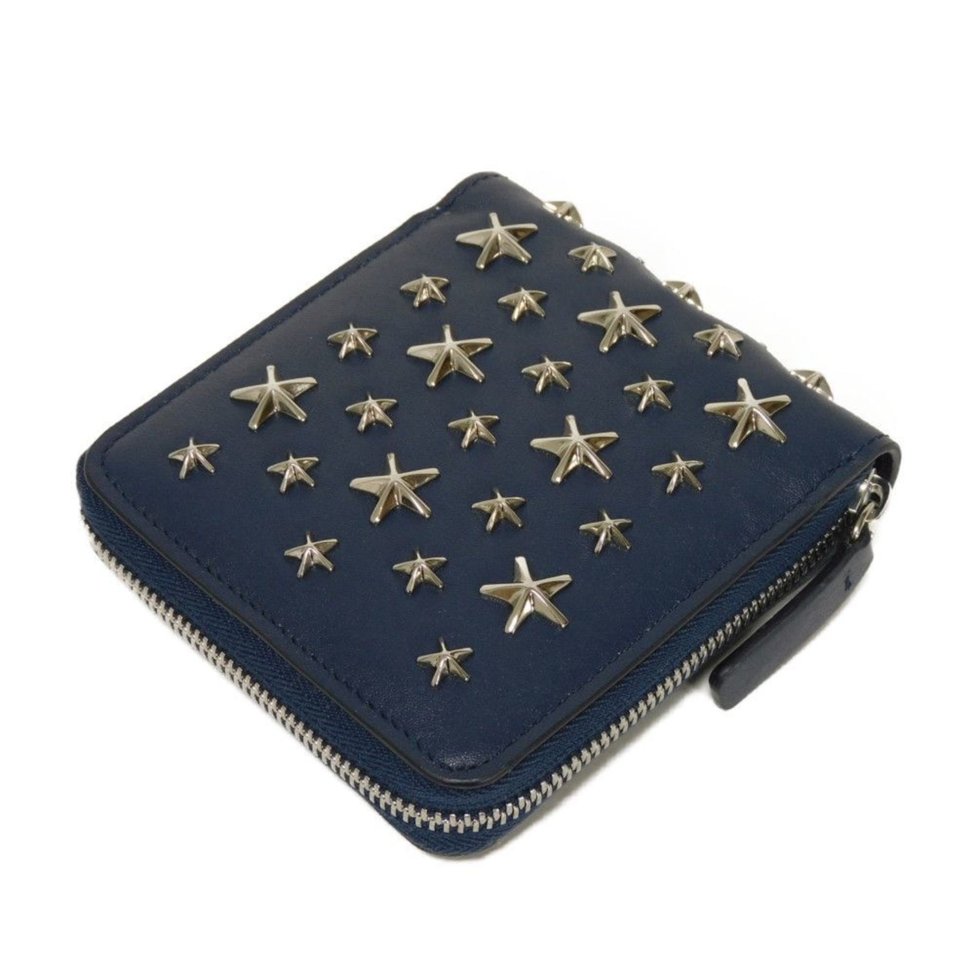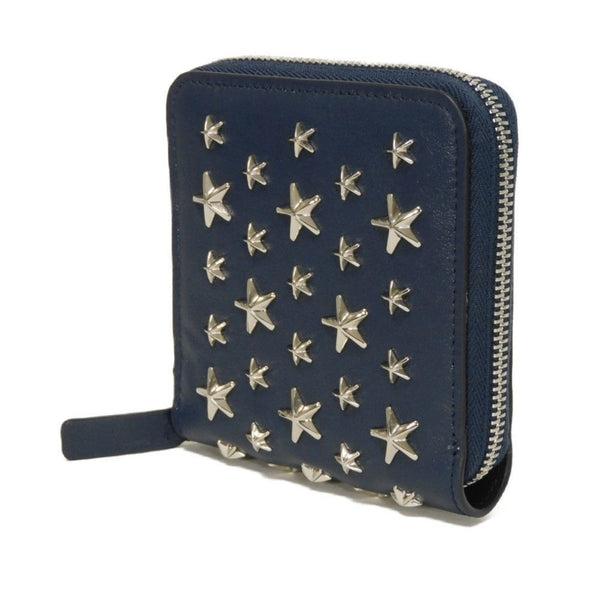JIMMY CHOO Laurence Calfskin Round Zip-Around Wallet with Star Studs and a Navy Blue Design for Men Women