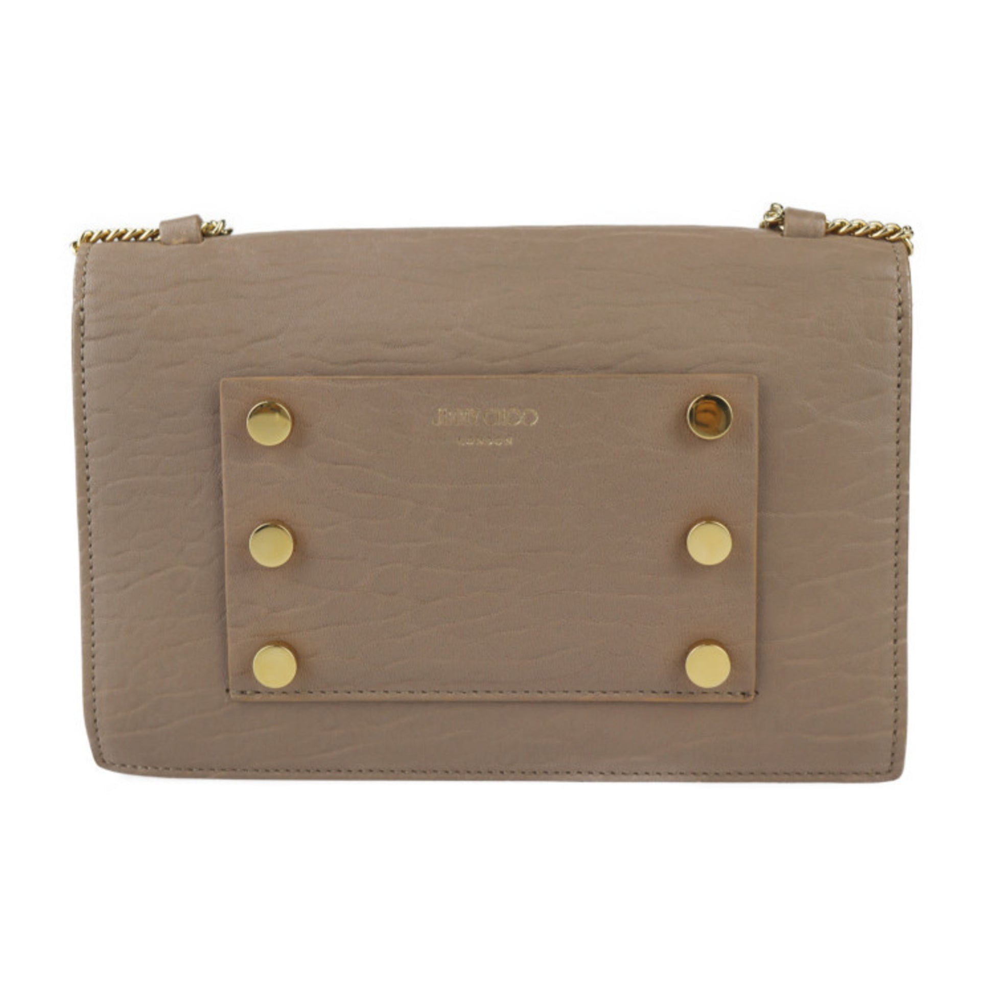 JIMMY CHOO Leila Shoulder Bag GNL 163 Leather Light Mocha Clutch Chain Pochette R2416083001066
