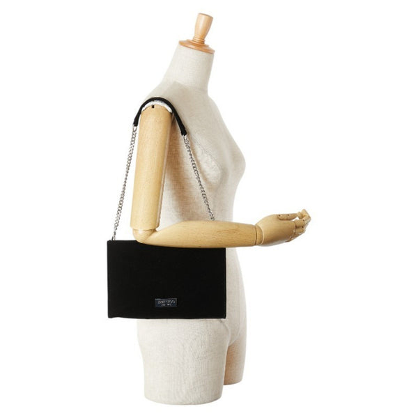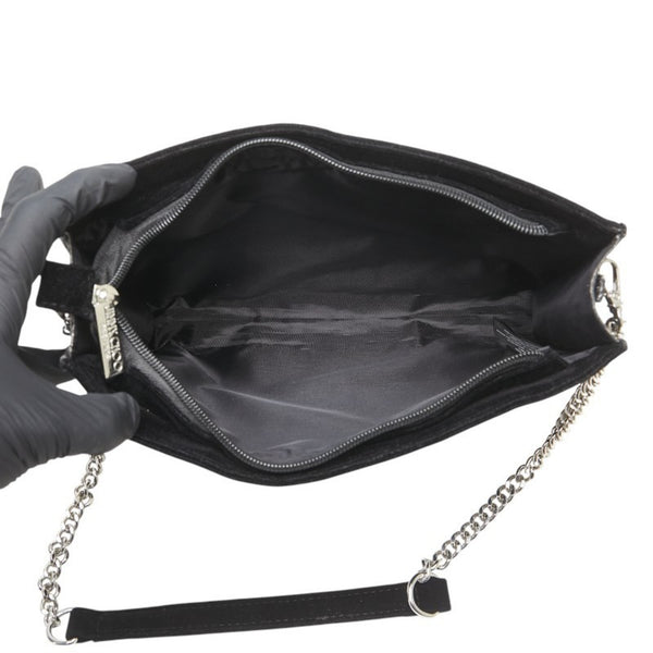 Jimmy Choo logo plate chain one-shoulder bag in black and silver, polyester, for women.