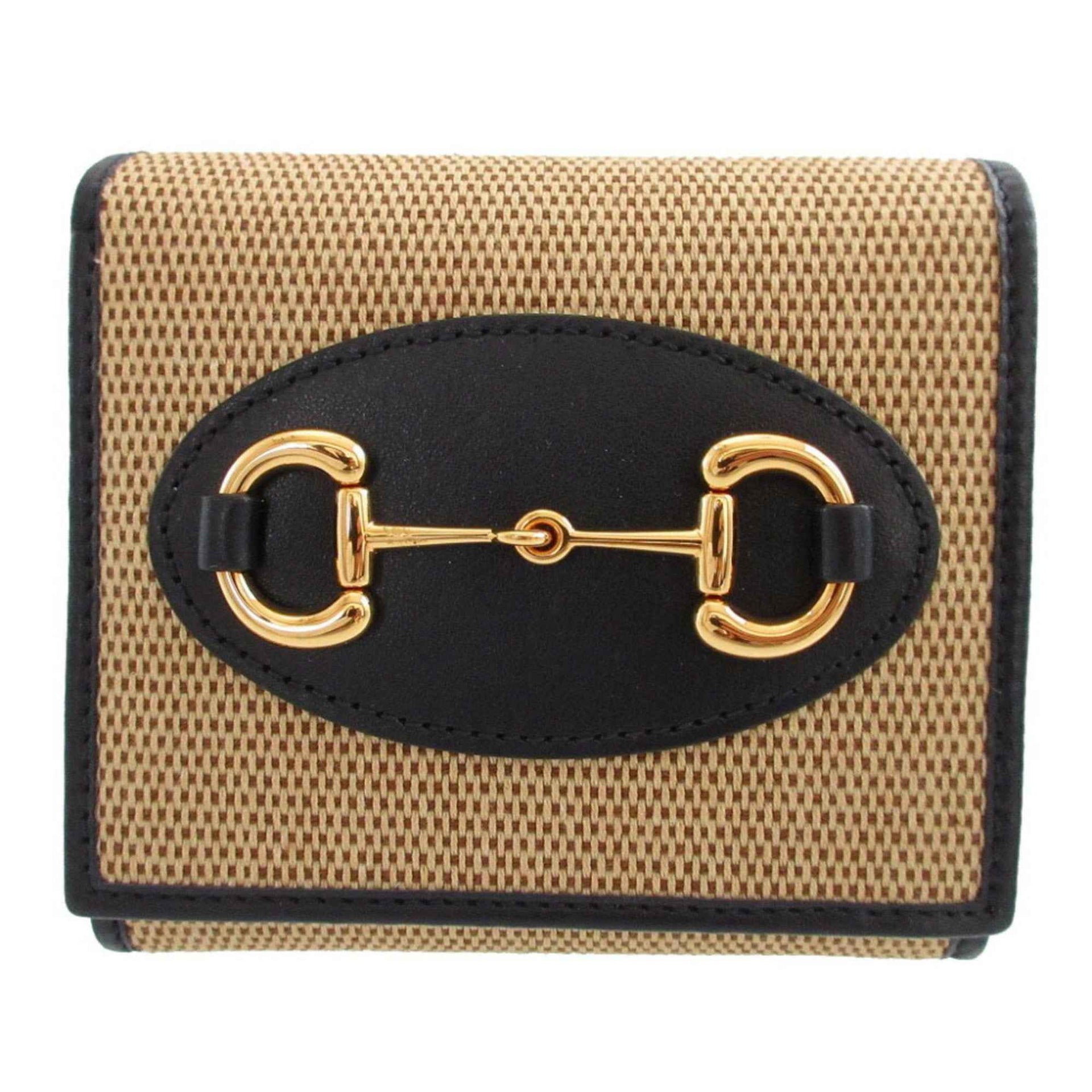 Like new Gucci 621891 Horsebit 1955 Compact Wallet Canvas Leather Beige Navy Blue Bi-fold 1323GUCCI