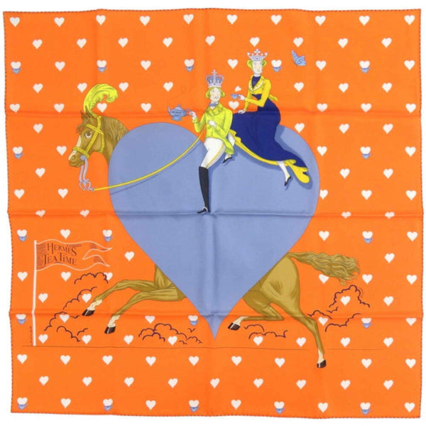 Like new Hermès Carré 70 Tea Time silk orange scarf/muffler 0202HERMES