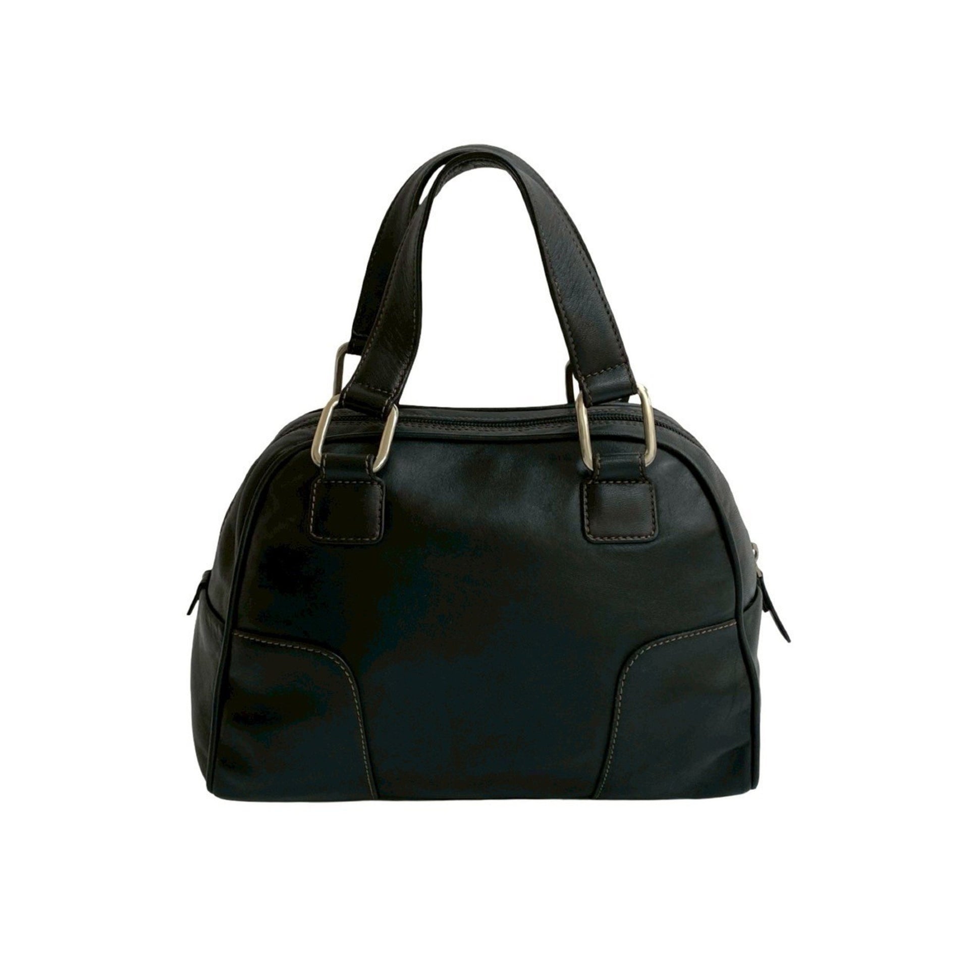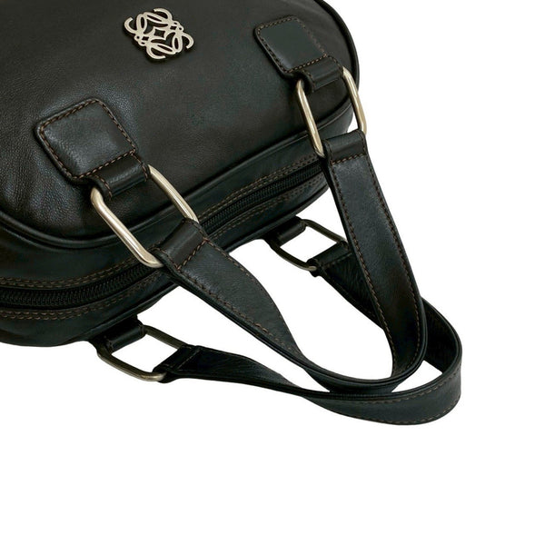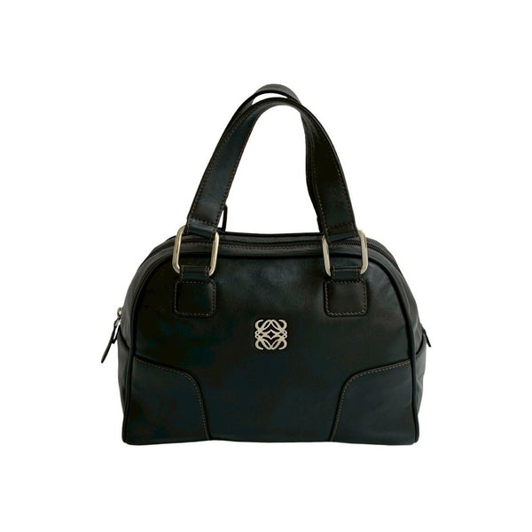 LOEWE Anagram Logo Silver Hardware Stitching Genuine Leather Handbag Mini Boston Bag Black 22755