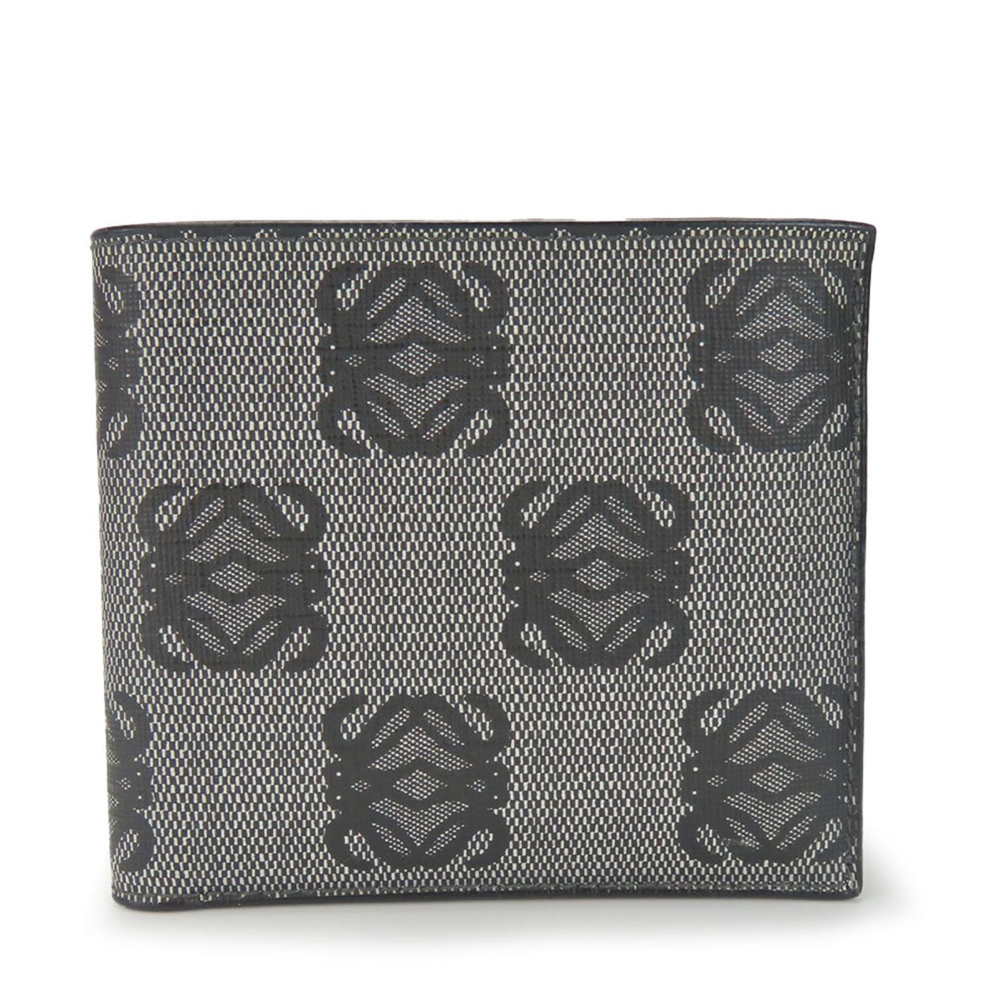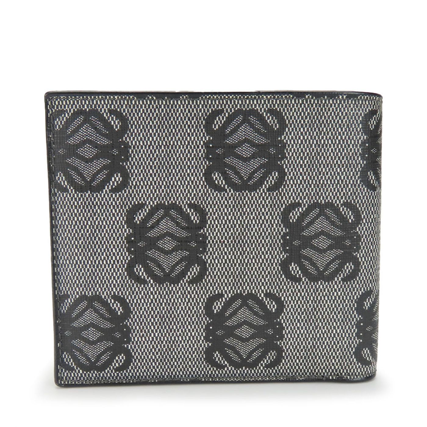 LOEWE Bi-fold Wallet Anagram Leather Grey Black Card Billfold Men\'s