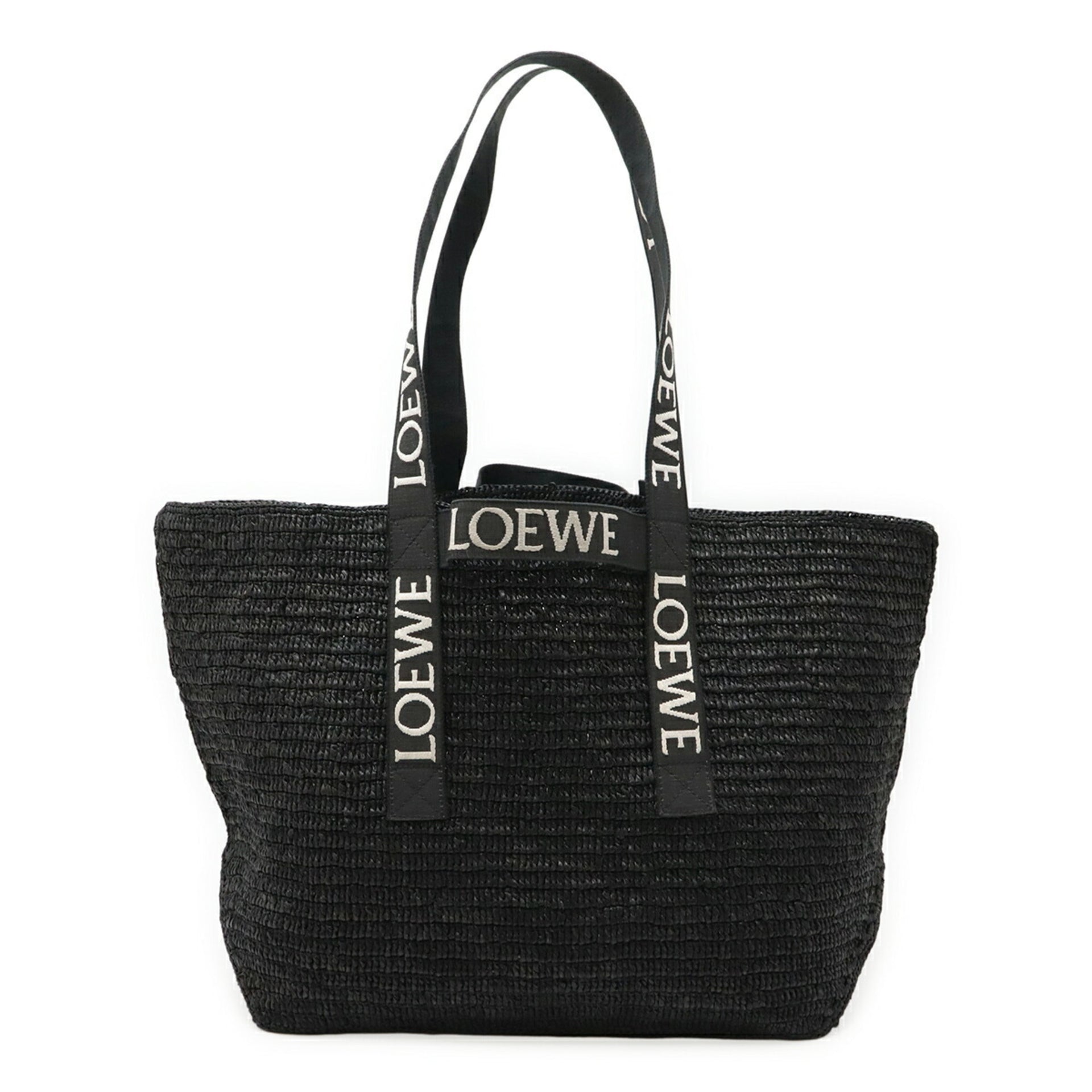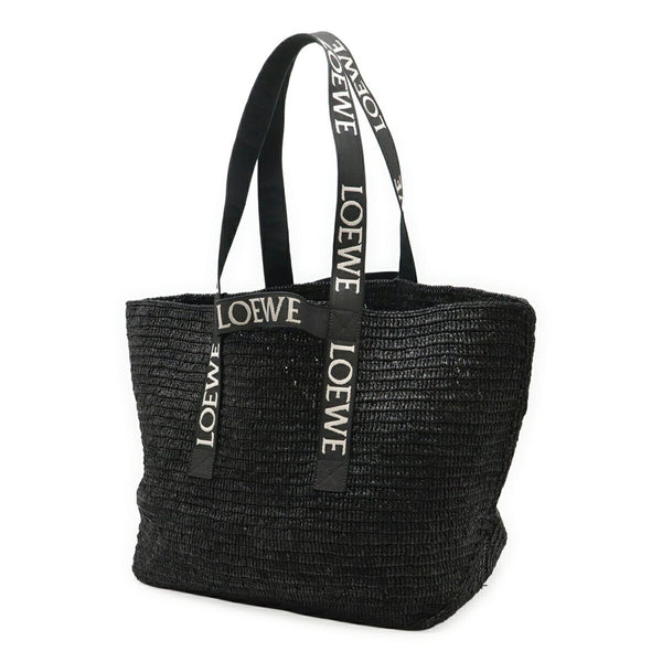 LOEWE FOLD SHOPPER Shoulder Bag, Basket Raffia, Black, B507X23X10