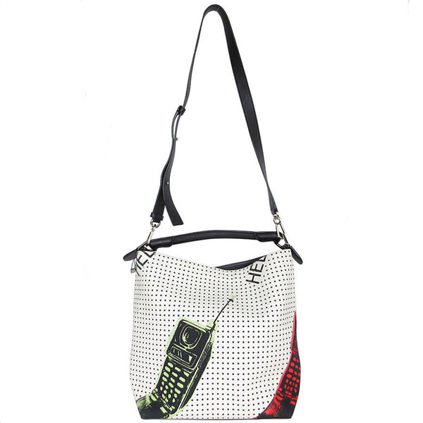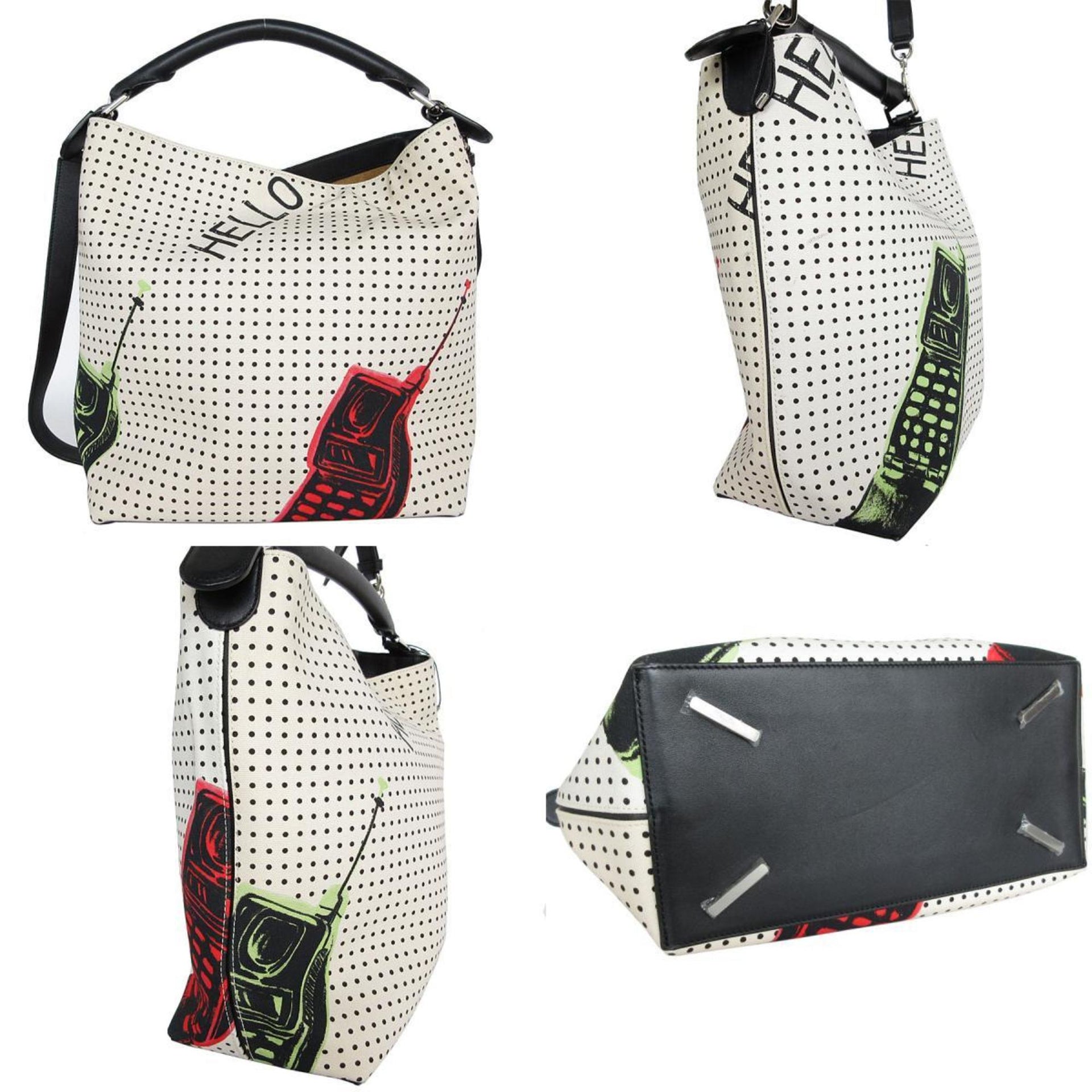 LOEWE handbag shoulder bag canvas leather ivory black silver ladies s0643a