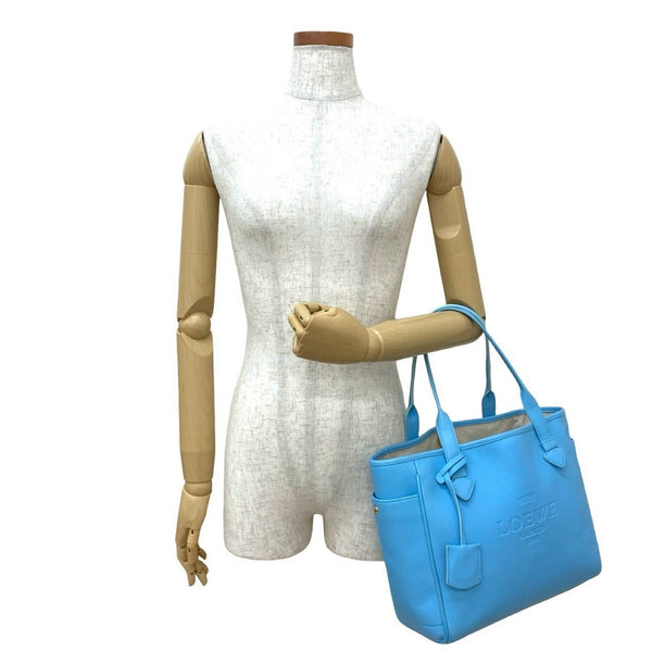 LOEWE Heritage Logo Embossed Leather Tote Bag, Handbag, Semi-Shoulder Blue, 75974