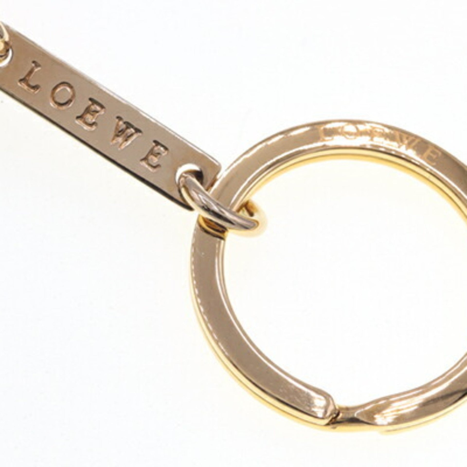 LOEWE Key Ring 674.15.007 Gold Leather Keychain Charm Coin Purse for Women