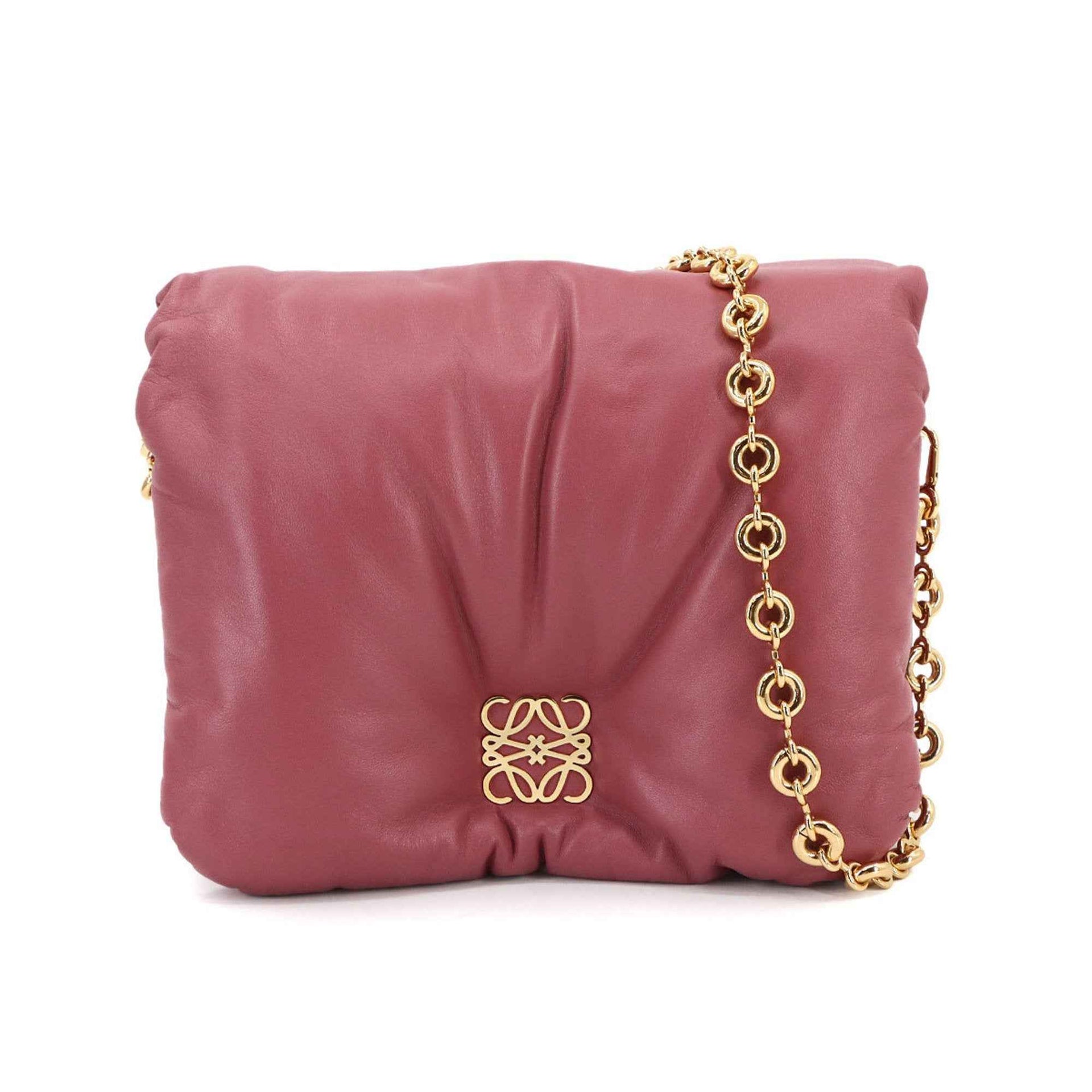 LOEWE Puffer Goya Chain Shoulder Bag in Pink Leather with Gold Hardware (A40P41X01)