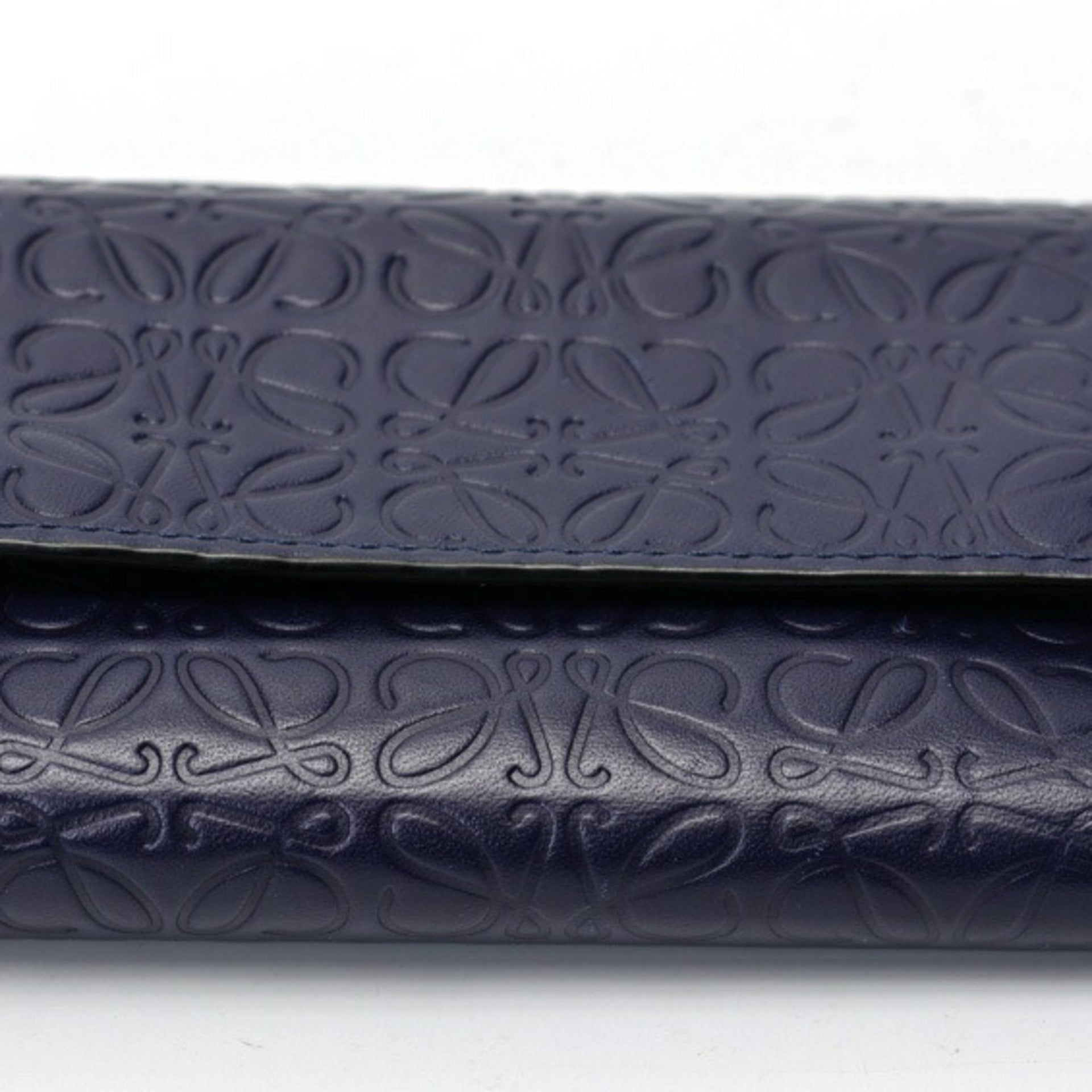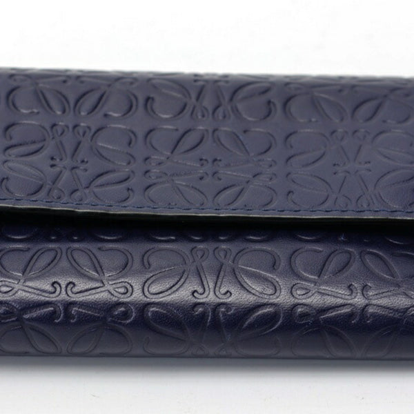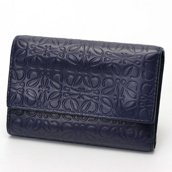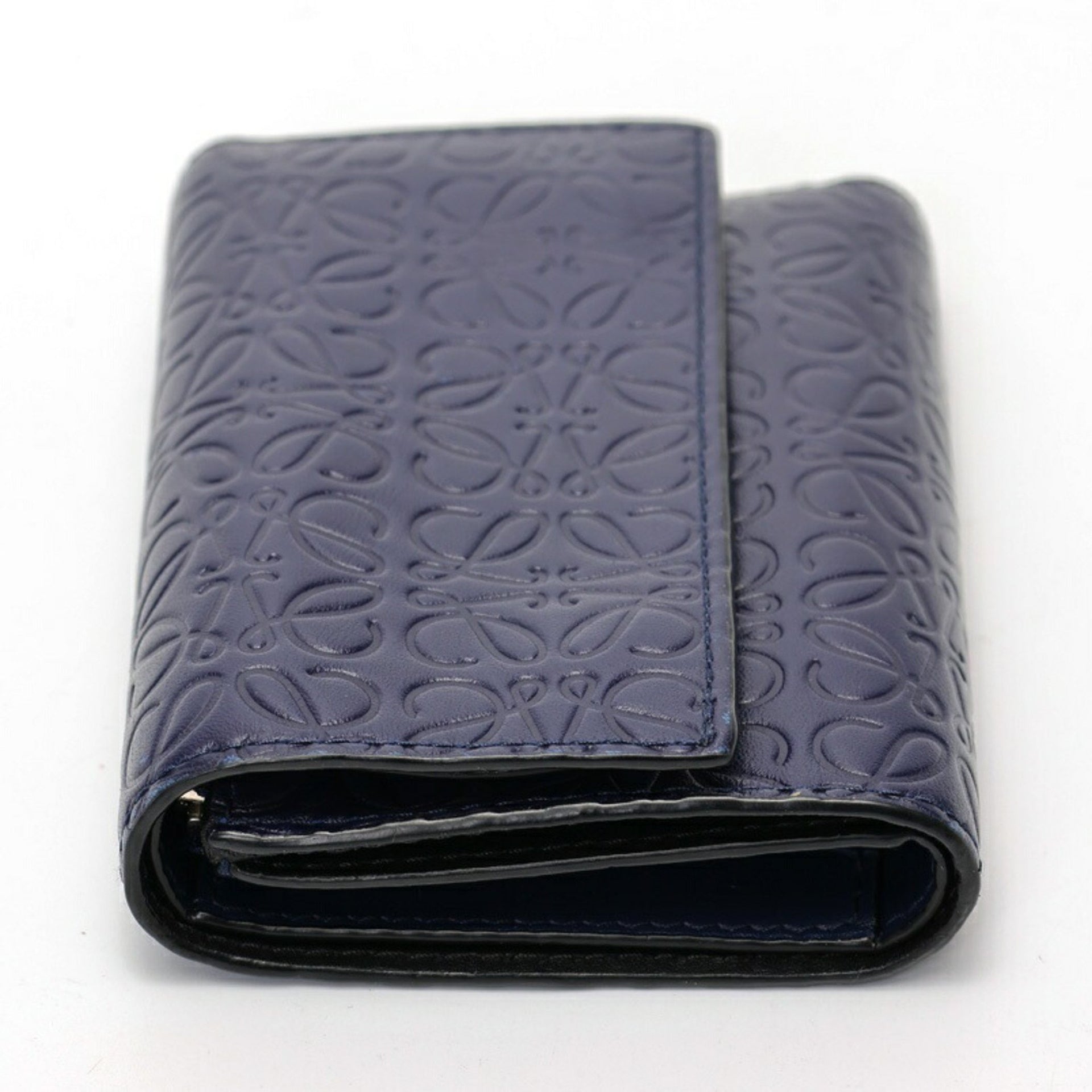 LOEWE Repeat Anagram Vertical Wallet Tri-fold Leather Navy E-157603