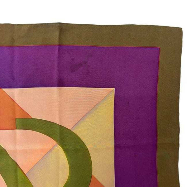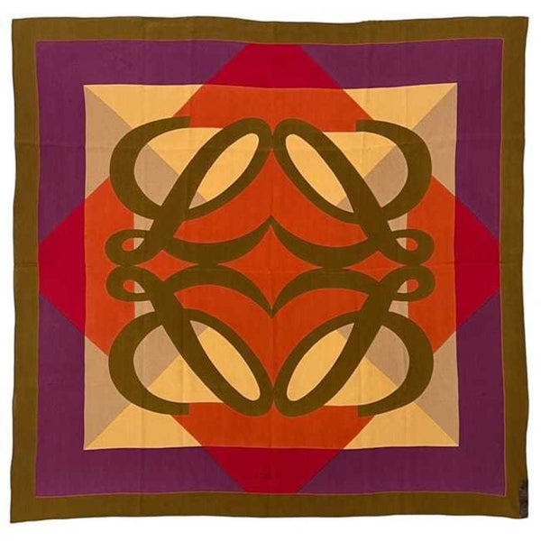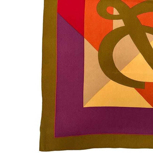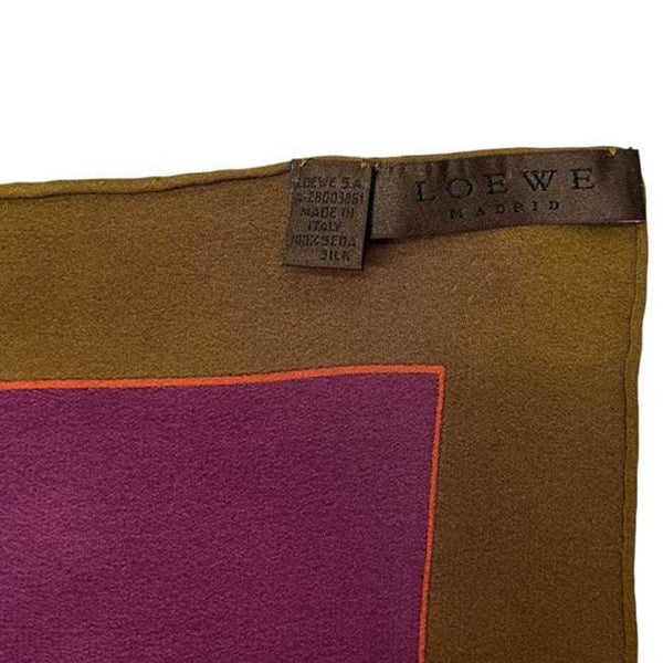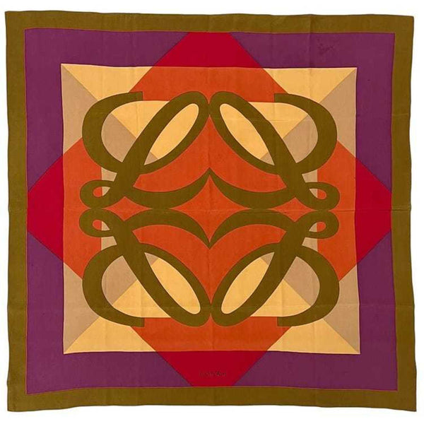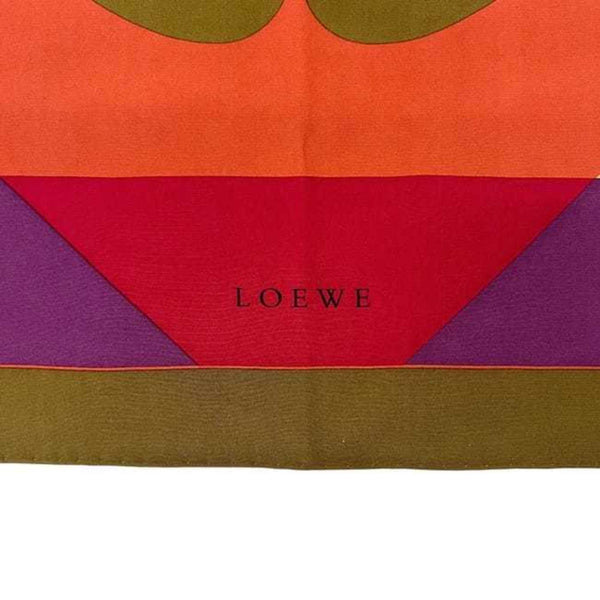 Loewe Scarf Muffler ec-24141 Orange Khaki Beige Anagram 100% Silk LOEWE Women\'s Multicolor Retro