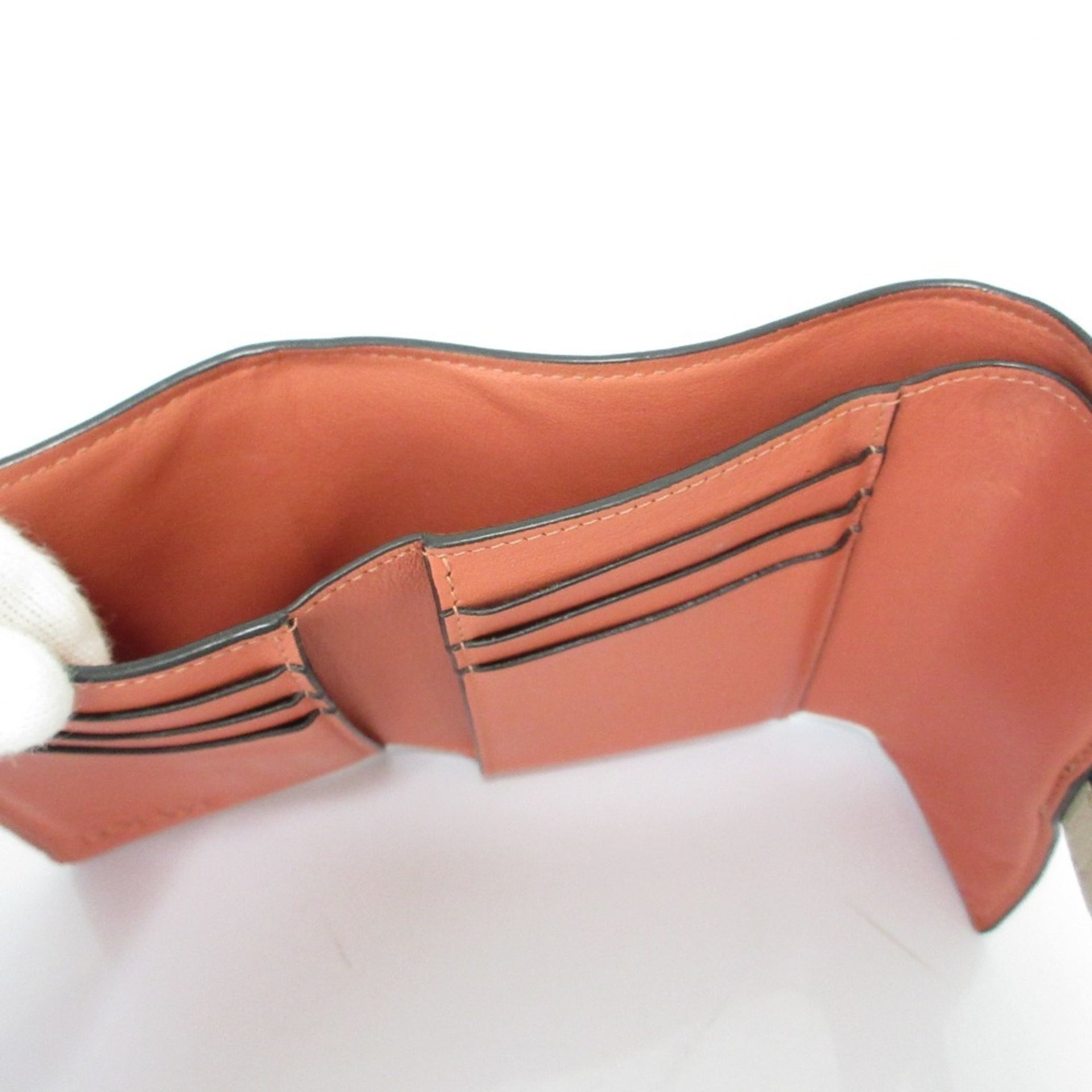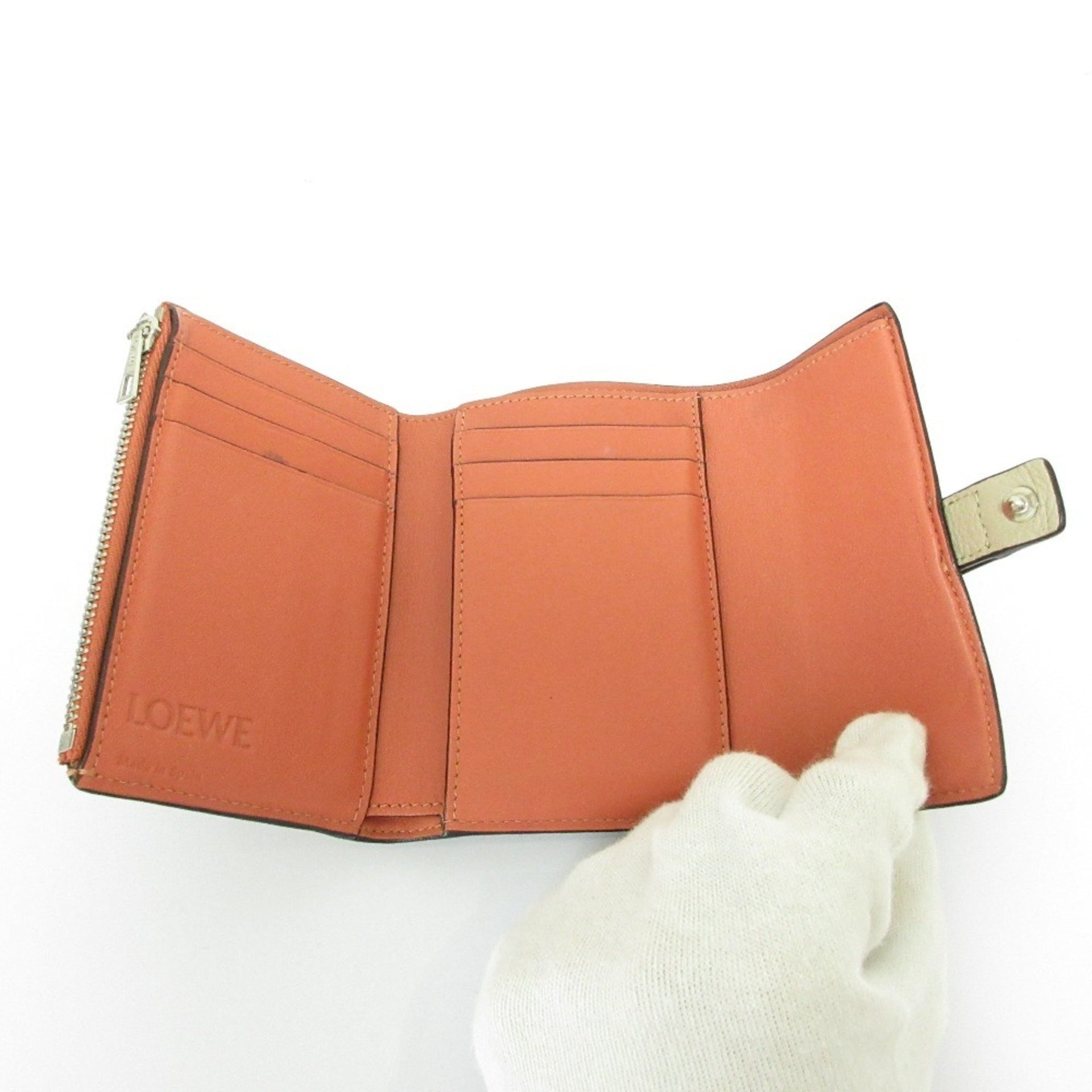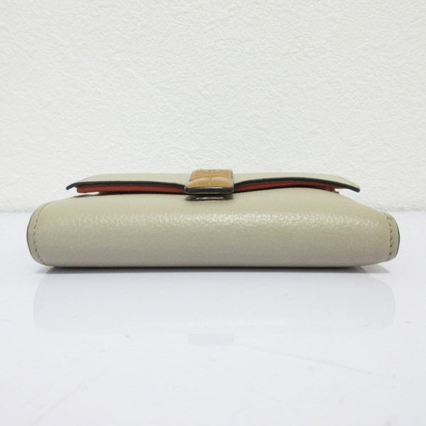 LOEWE Small Vertical Leather Compact Wallet Tri-fold Beige Women\'s