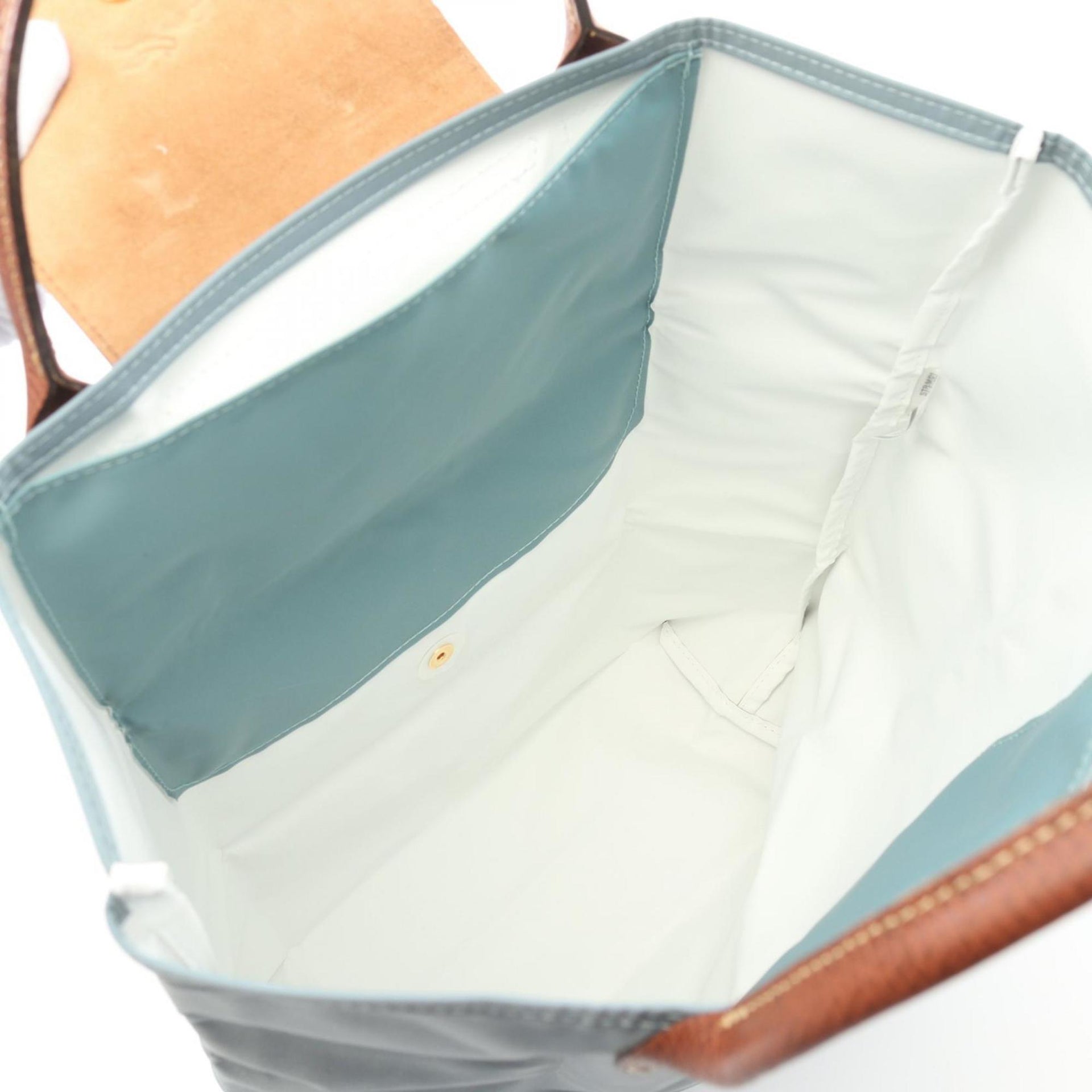 Longchamp Le Pliage Original M Tote Bag Fabric Leather Women\'s Green Brown Eucalyptus 10168089P93